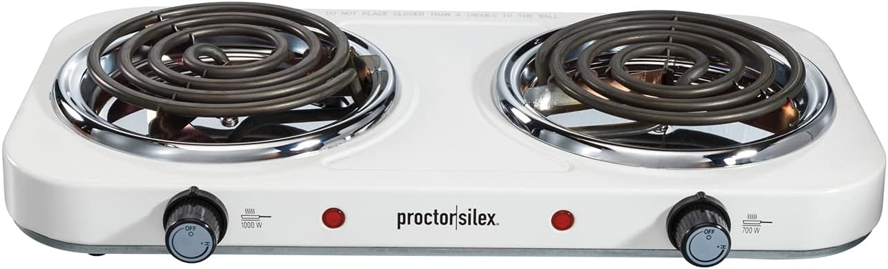 Proctor Silex Electric Double Burner Cooktop w/ Adjustable Temperature - White