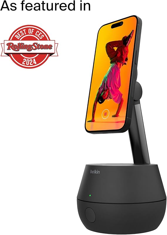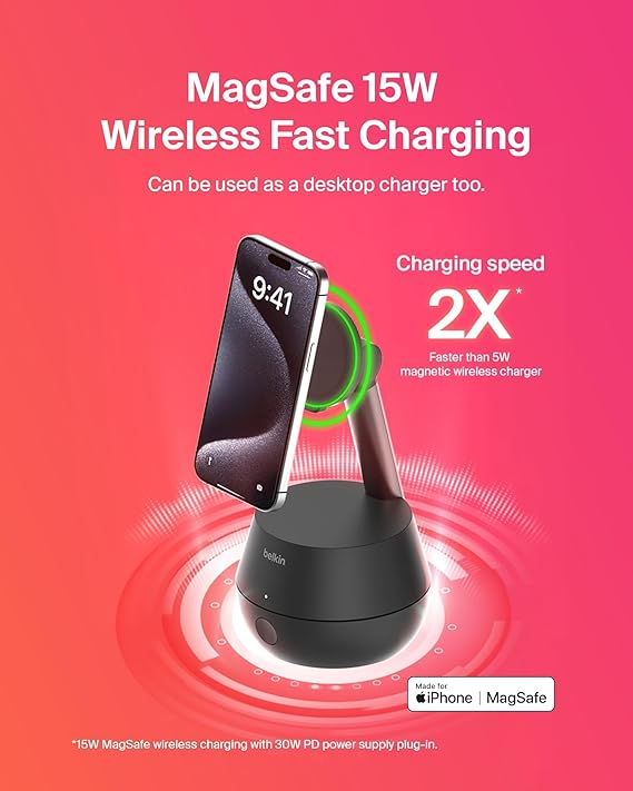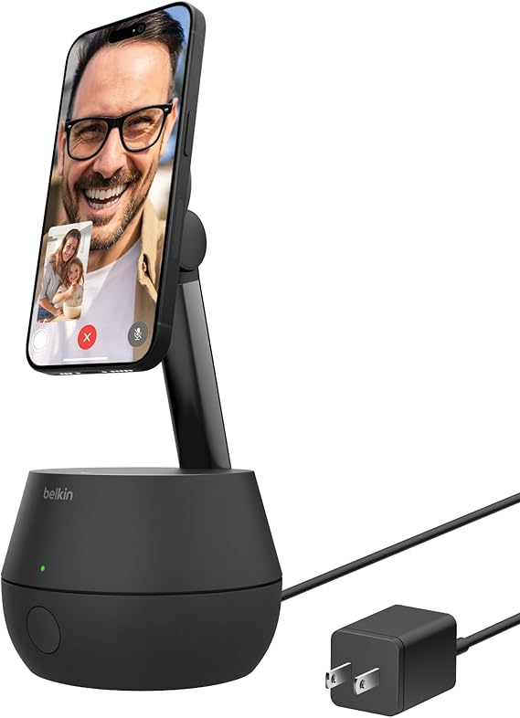 Belkin Wireless Charger Stand, Auto Face Tracking, Apple DockKit Certified, Tripod & MagSafe Compatible, 360° Rotation