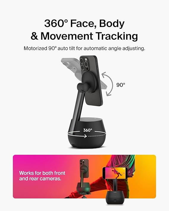 1. 360° FACE, BODY, and MOVEMENT TRACKING: Get a more immersive and interactive experience during FaceTime and video calls with loved ones, as this stand will accurately track and respond to your movements – perfect for vlogging, shooting livestream, and more.