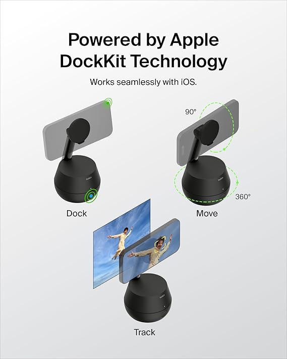 1. IOS INTEGRATED: Smart tracking stand requires no additional apps to work with FaceTime and Camera apps – seamless connection to iOS devices. Be tracked as soon as you mount your phone, as this compatibility also triggers the tracking function seamlessly.