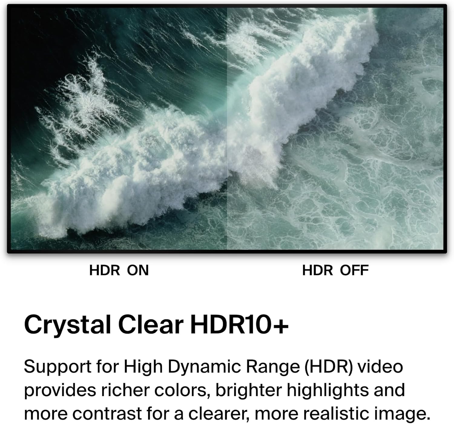 - Support for High Dynamic Range (HDR10+) video provides richer colors, brighter highlights and more contrast for a clearer, more realistic image.