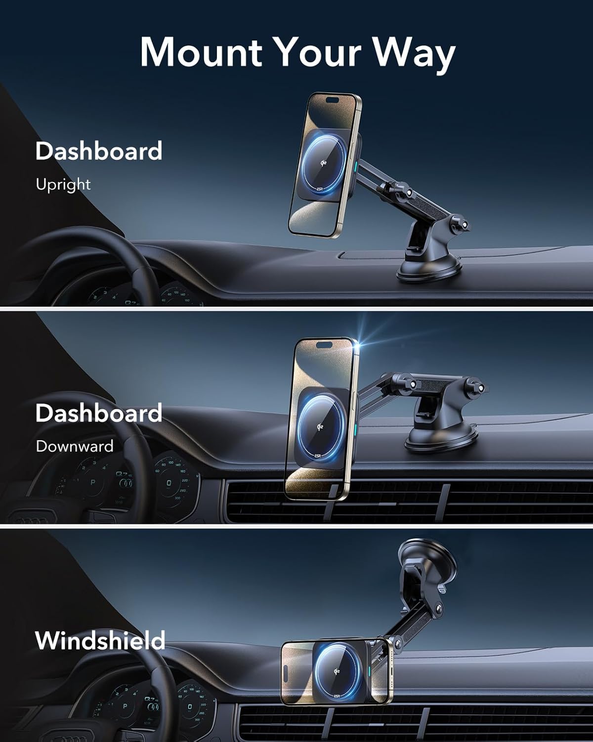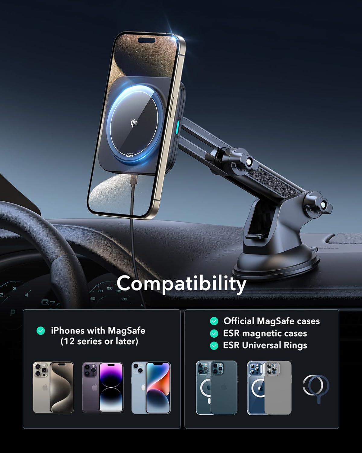 ESR for Qi2 15W MagSafe Car Mount Charger, Fast Charging -Black