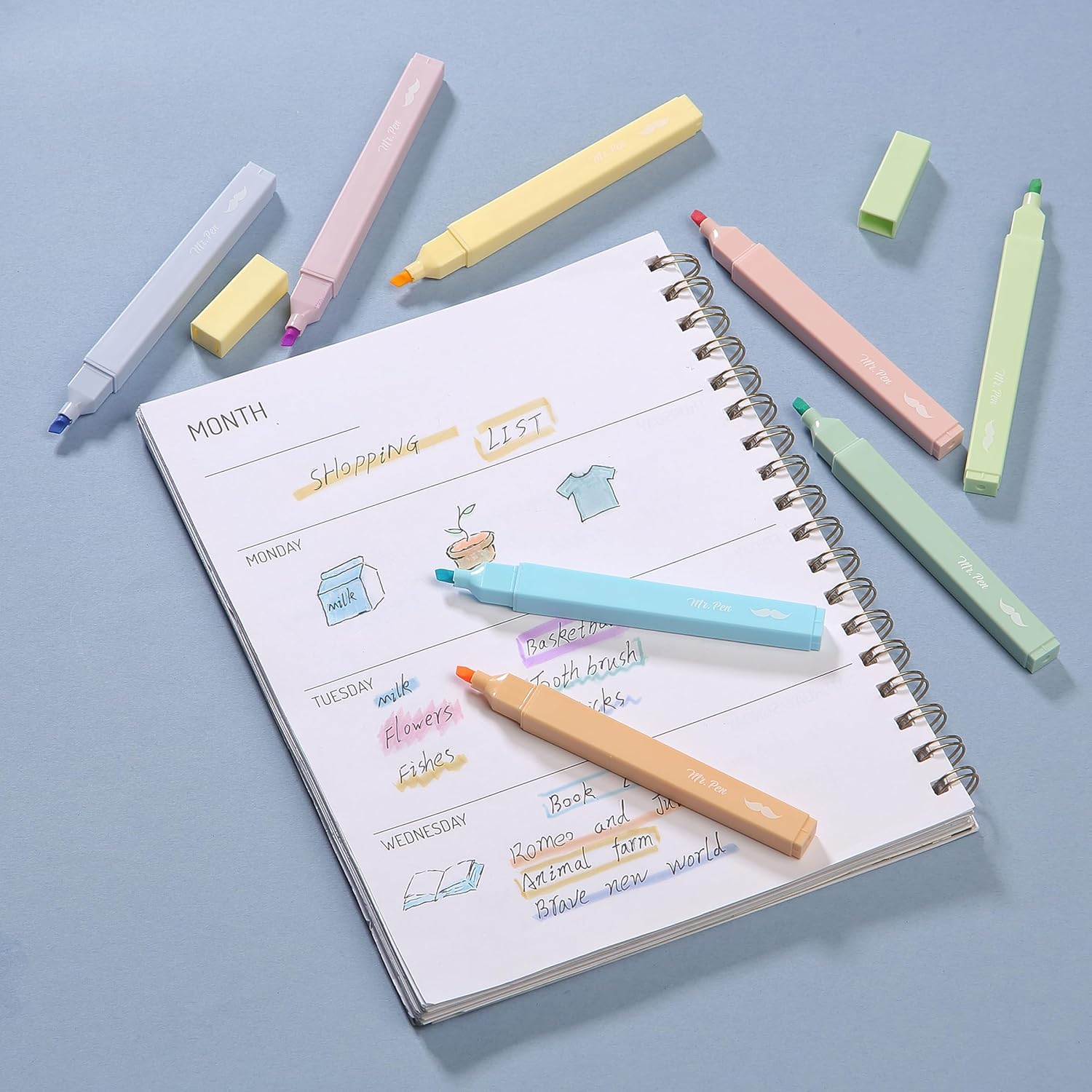 Mr. Pen- Aesthetic Highlighters, 8 pcs, Chisel Tip, Pastel Colors, Cute Highlighters Assorted Colors, Bible Highlighters and Pens No Bleed