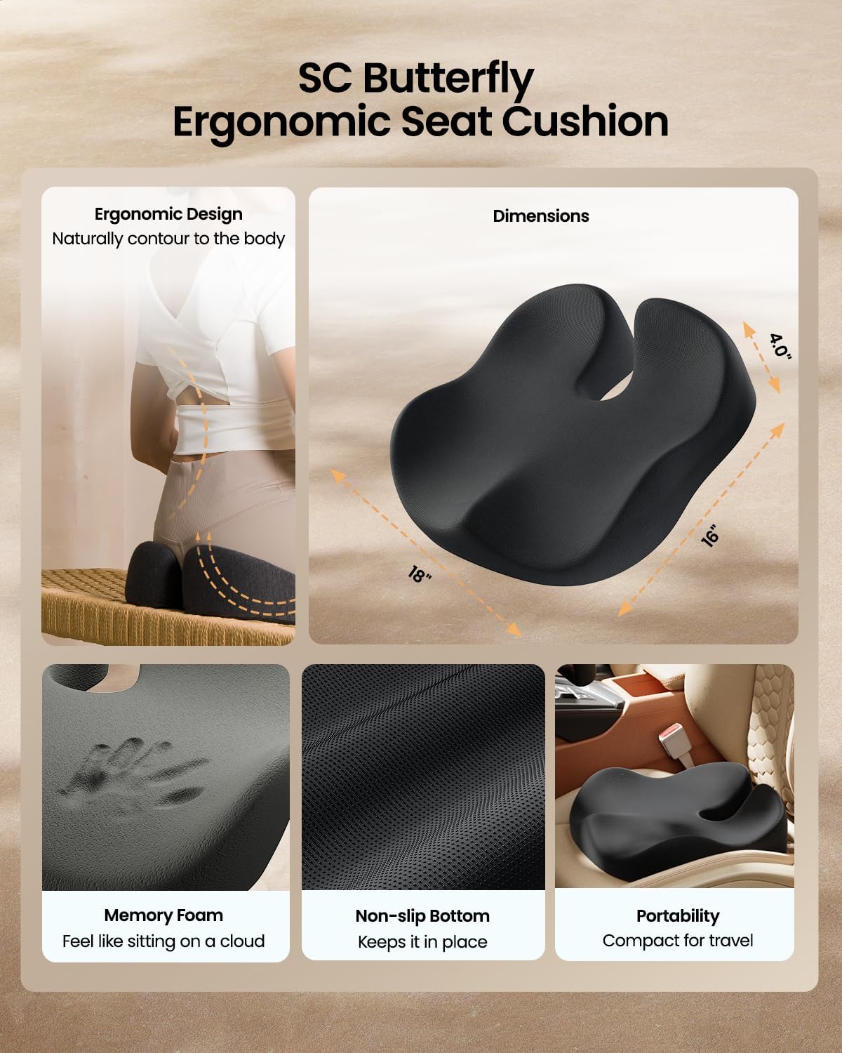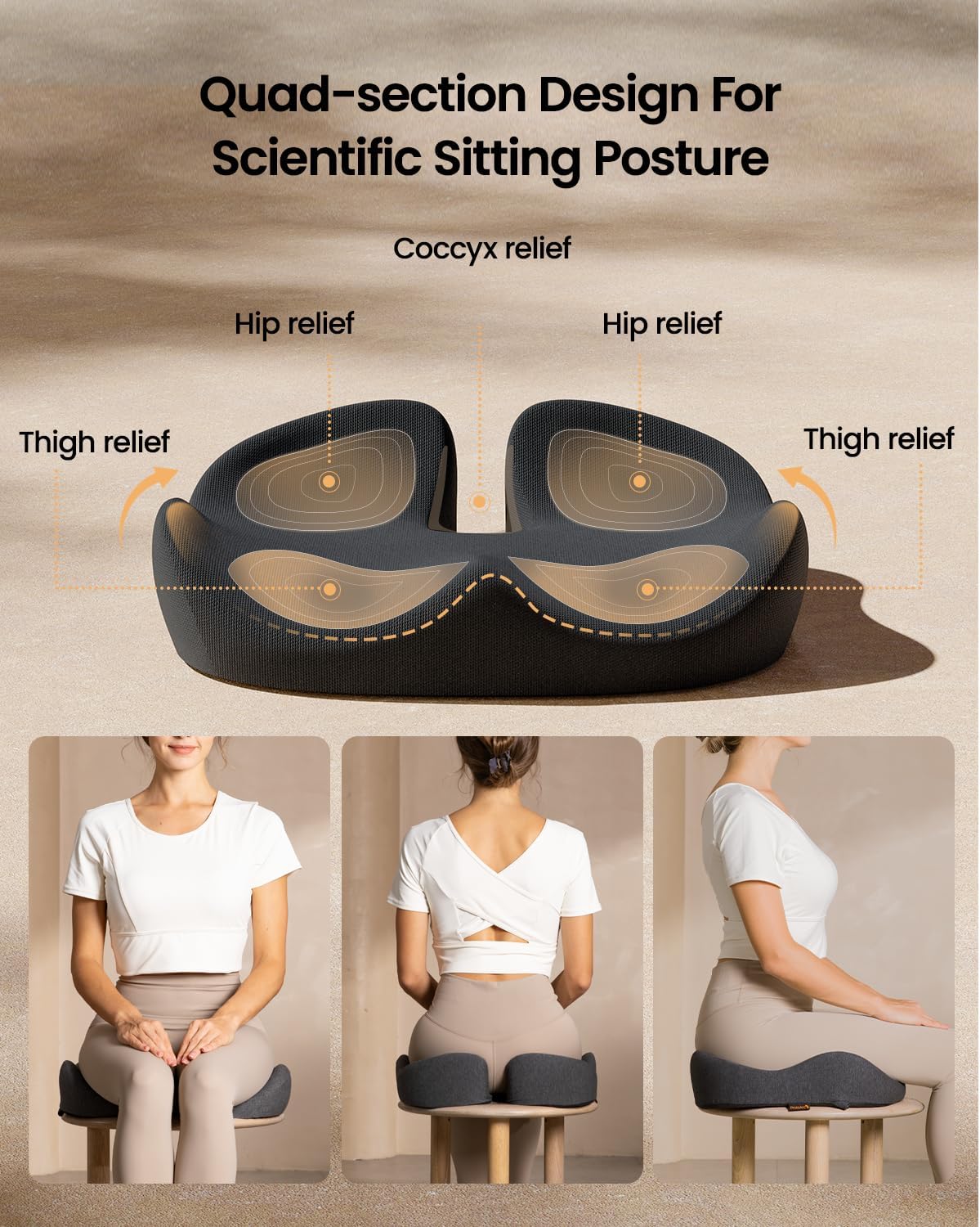 posture. Ideal for long hours seated, offers relief from back and hip pain.