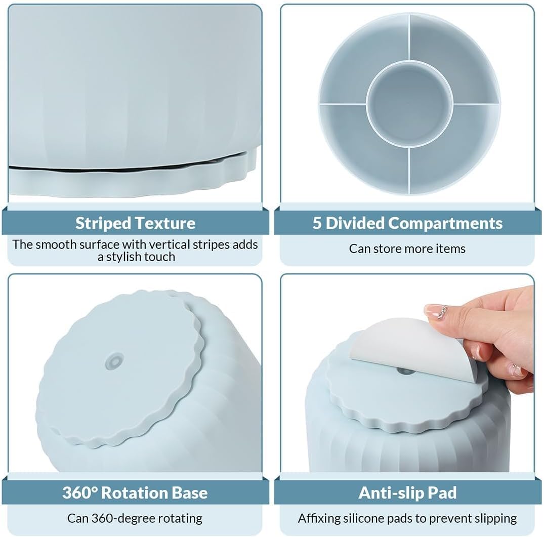 SKYDUE 360 Degree Rotating Desk Organizer Pencil & Pen Holder - 5 Slots - Blue