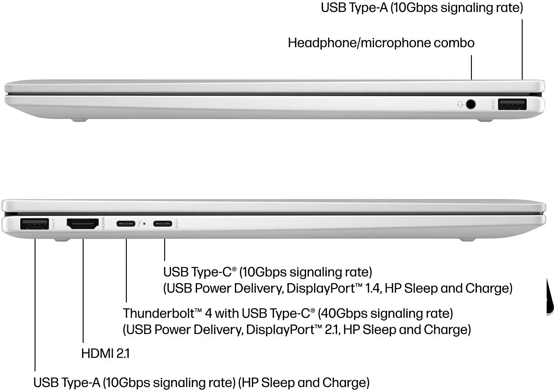 1x Thunderbolt 4, 1x USB Type-C, 2x USB Type-A, 1x HDMI, 1x