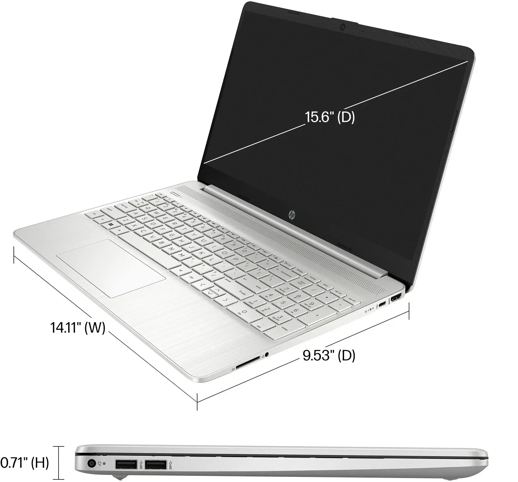 HP 15.6" Touchscreen Laptop - Intel Core i3, 8GB, 128GB SSD, Windows 11 in S Mode - Natural Silver