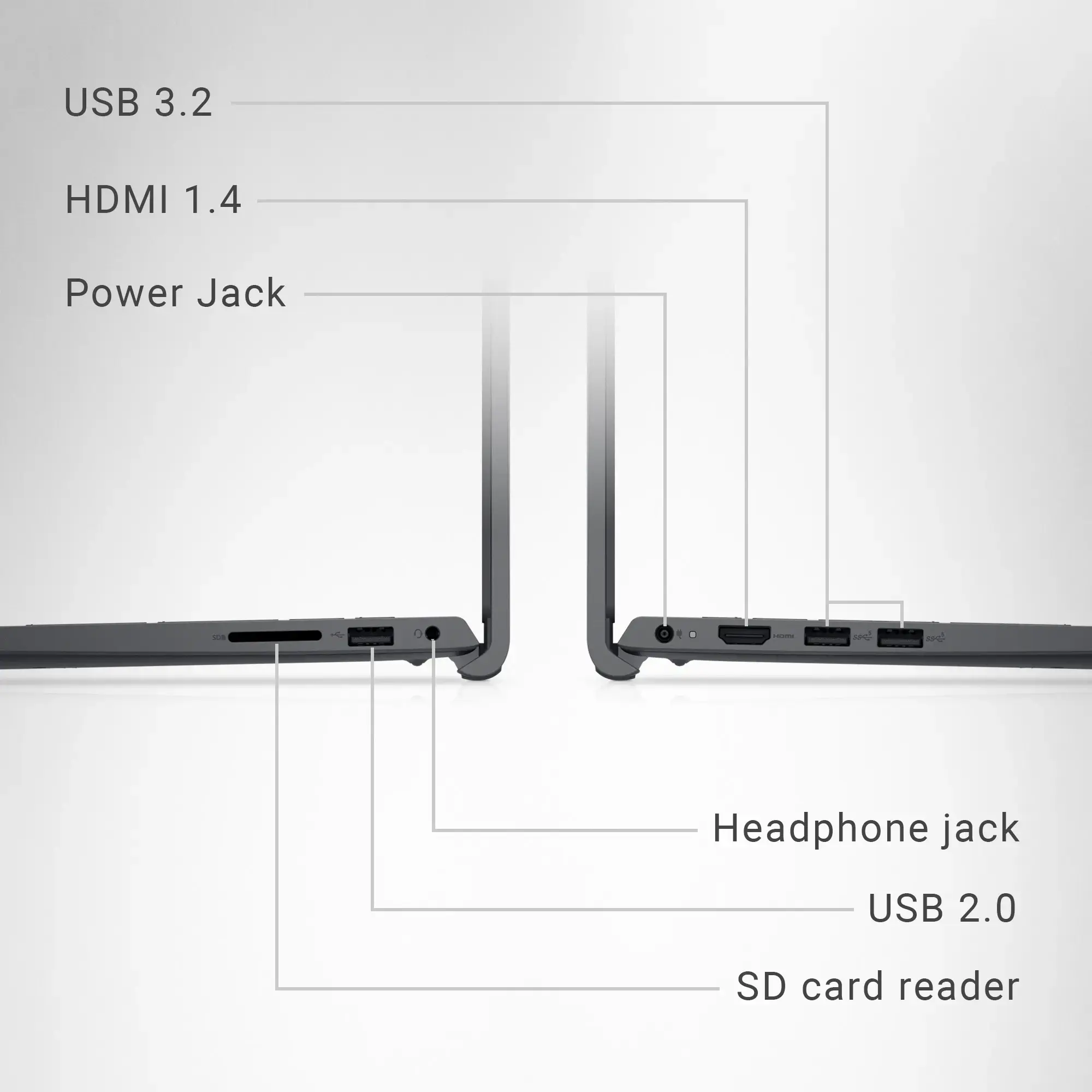 2.0 Type-A, 1x HDMI, 1x Headphone Jack, 1x Media Card Reader