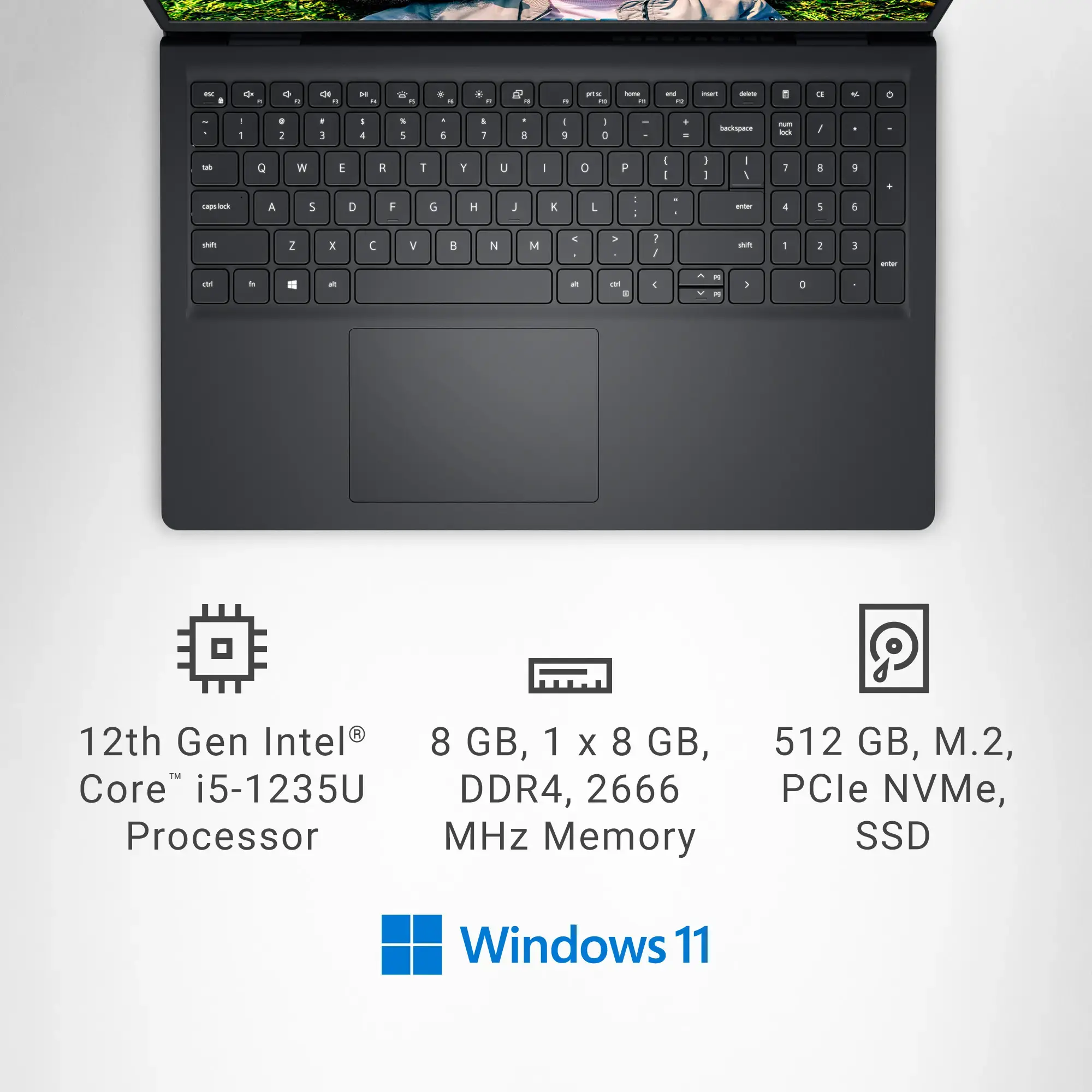 Dell Inspiron 15 3520 15.6" Full HD Touchscreen Laptop, Intel Core i5, 8GB, 512GB SSD, Windows 11 Home