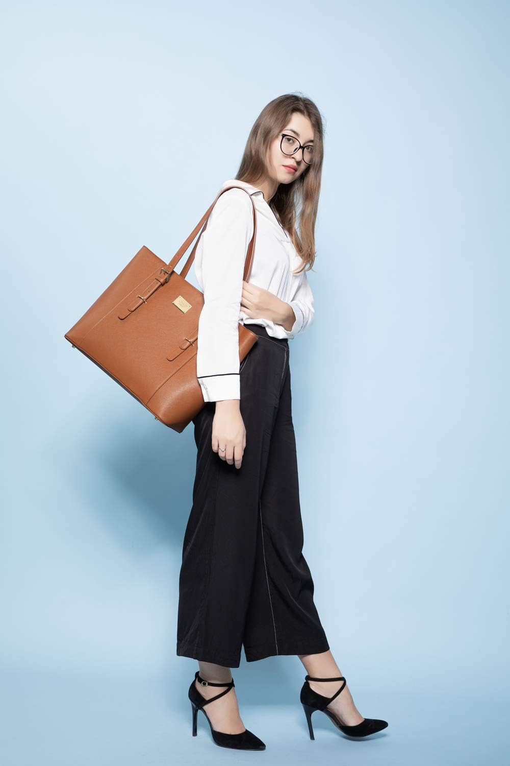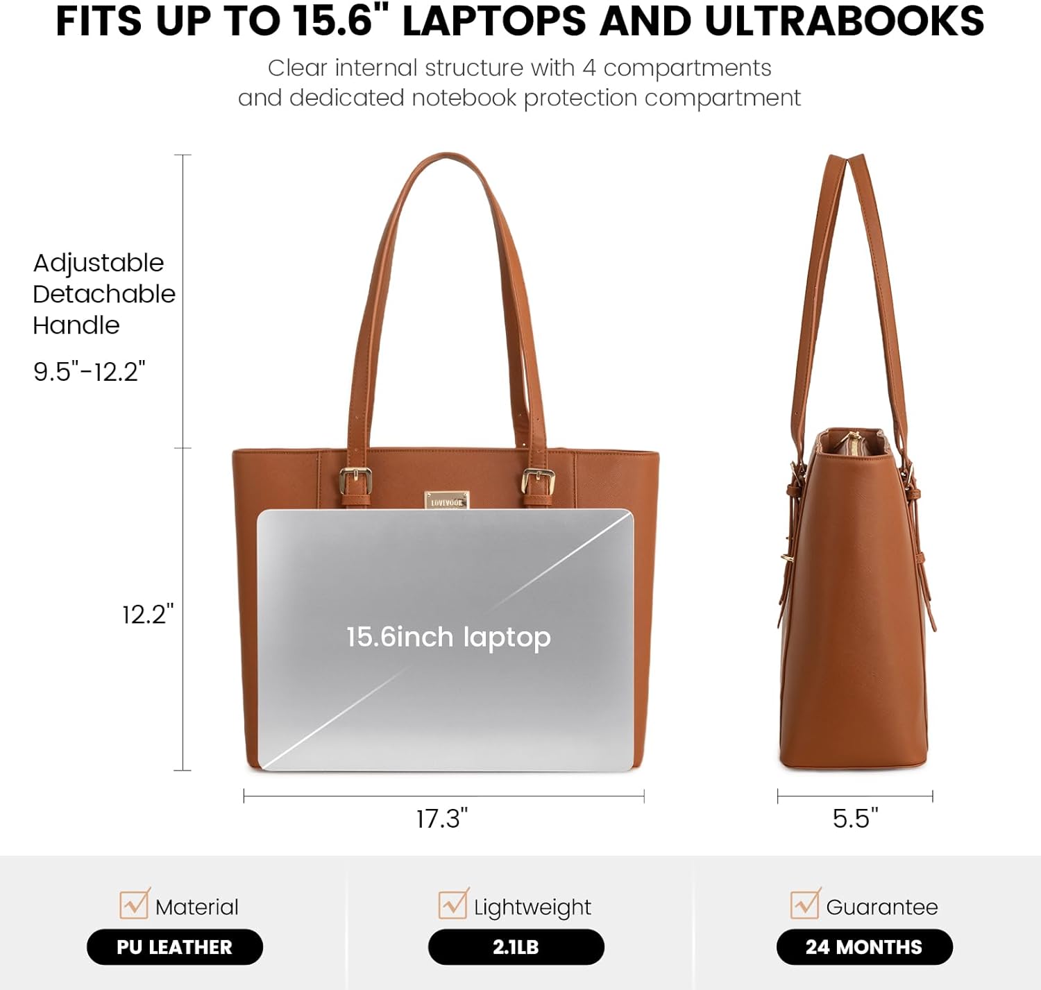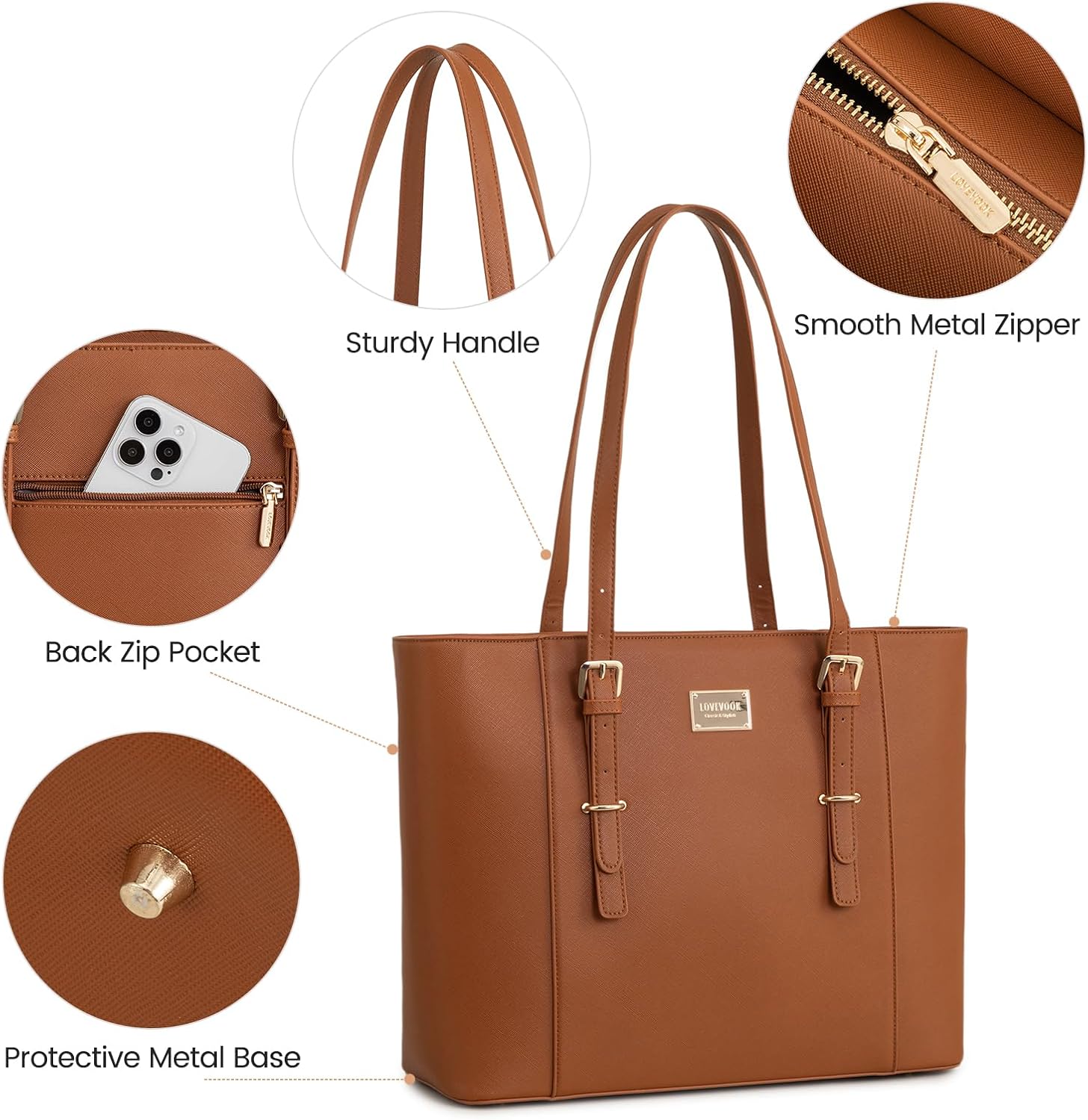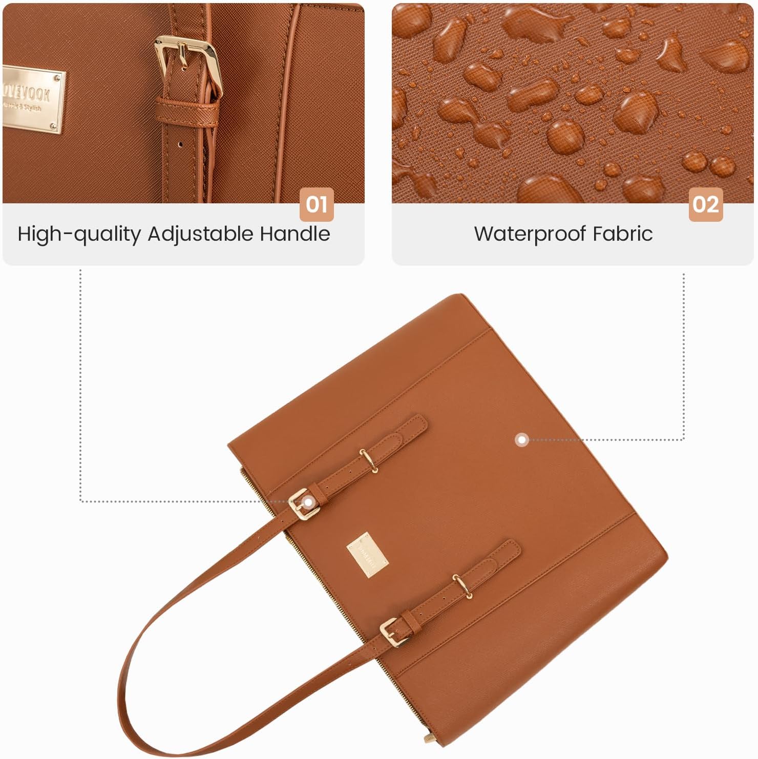 LOVEVOOK Laptop Bag for Women Large Office Handbags Briefcase Fits Up to 15.6 Inch - Brown