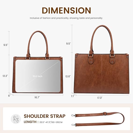 LOVEVOOK Laptop Tote Bag Vintage for Women 15.6 Inch Waterproof Leather Computer Bags Business Office Work Bag Briefcase -Dark Brown