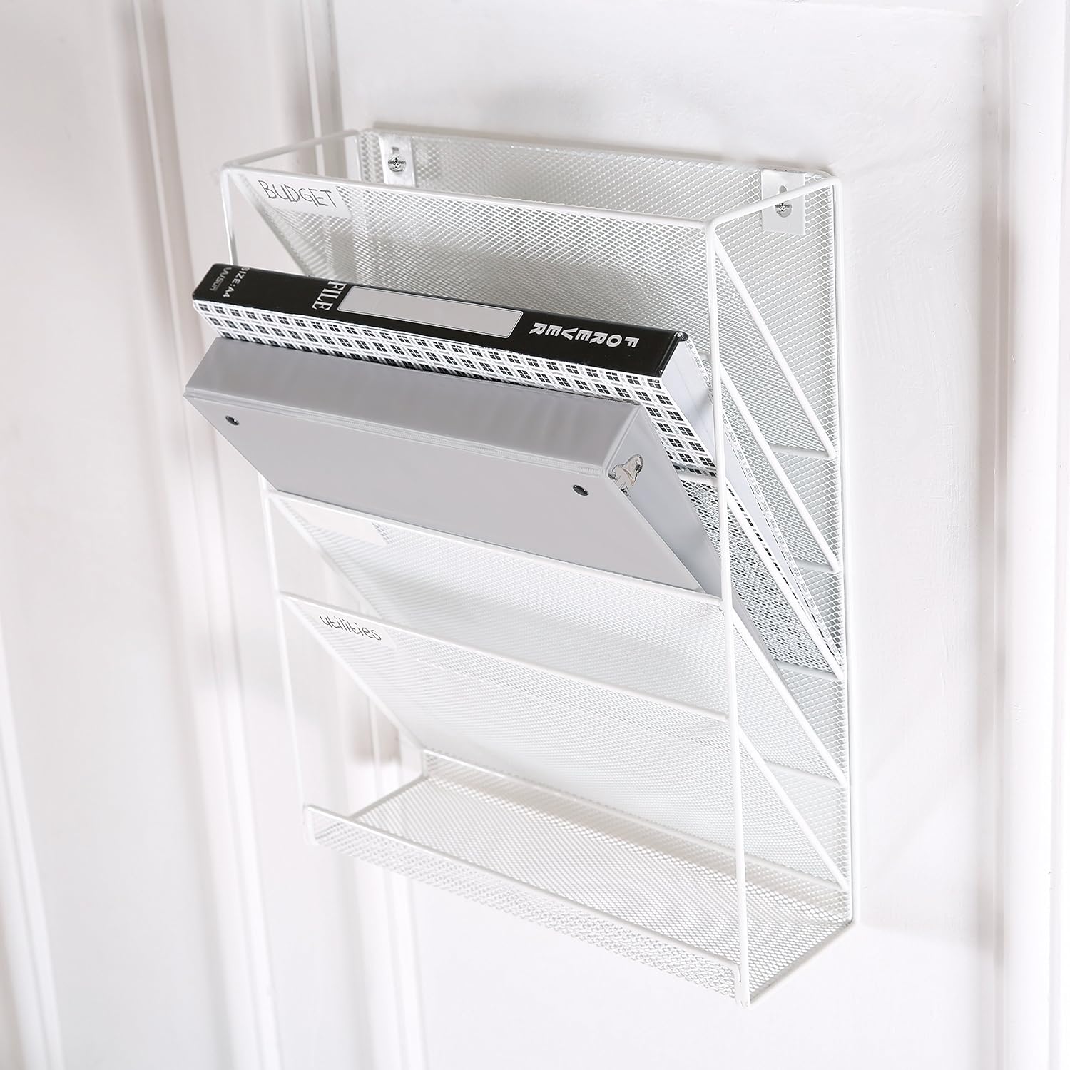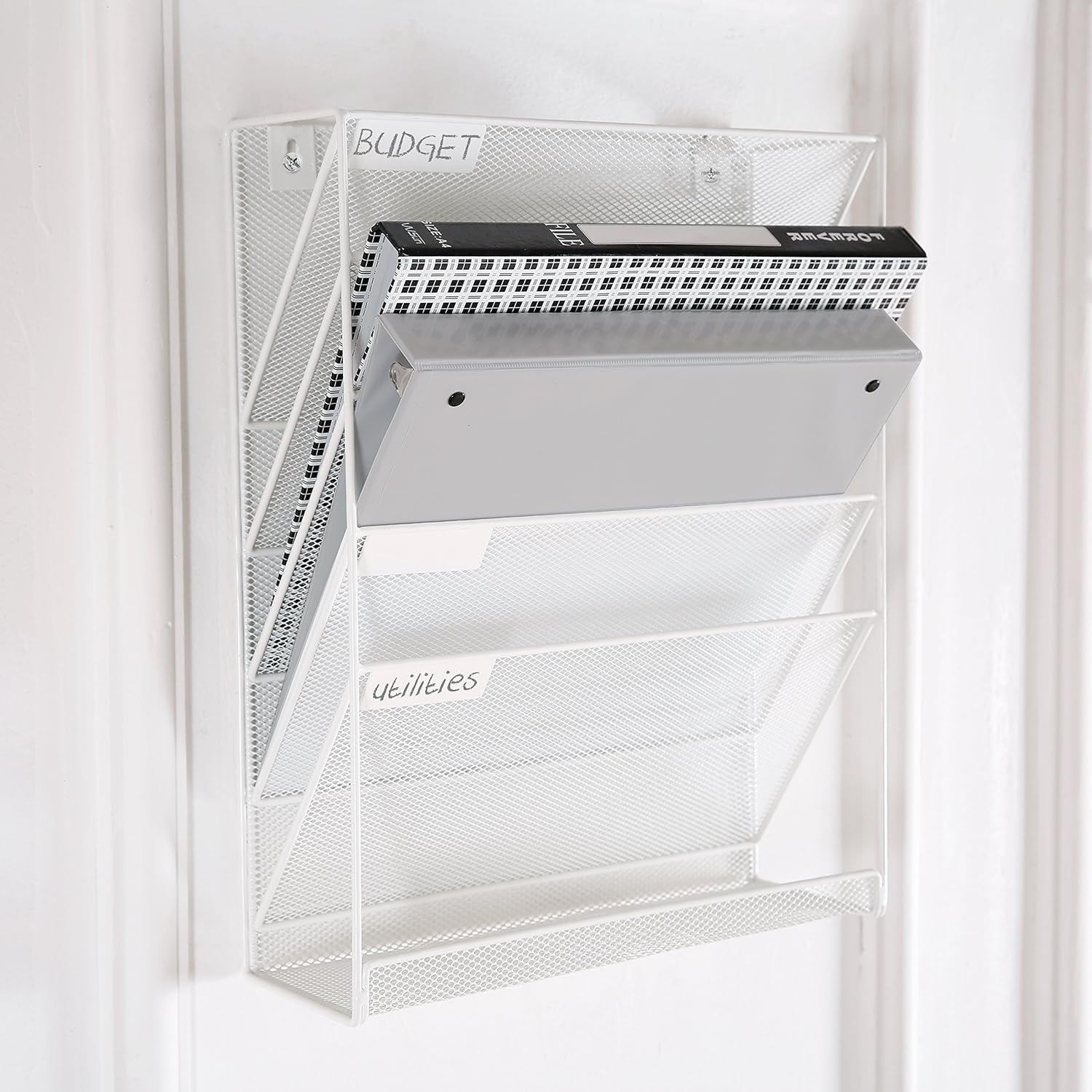 Unknown: preg_replace(): Passing null to parameter #3 ($subject) of type array|string is deprecated in /home/jin/public_html/system/storage/modification/system/engine/action.php on line 30 Wall Mounted Mesh Metal Office Document File Folder Magazine Holder Rack Hanging Filing System with Bottom Storage Shelf with 5 Slanted Slots - White
