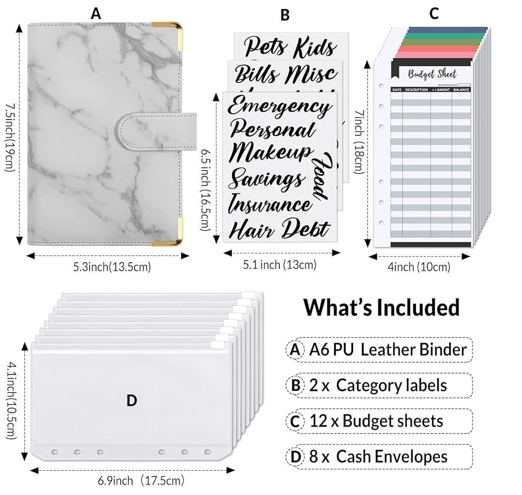 labels. The budget binder with cash envelopes is perfect for saving money. The