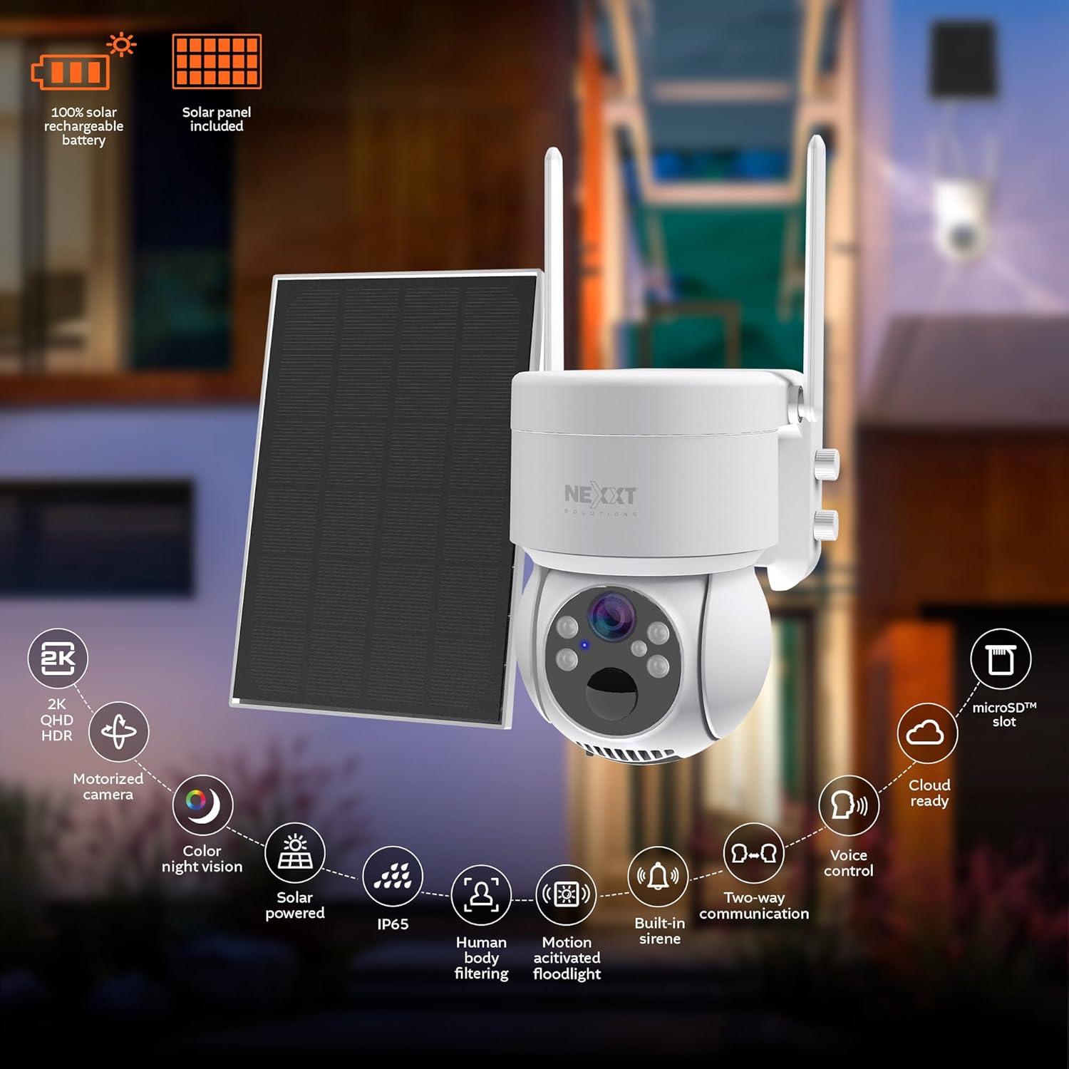 Nexxt Smart Wi-Fi Solar Camera - Outdoor PTZ, Motion Detection, Night Vision, Wireless Security Home Automation System (Alexa & Google Home Compatible)