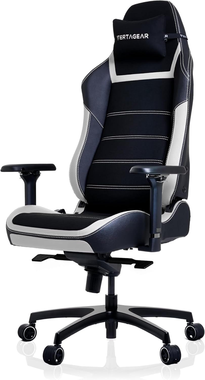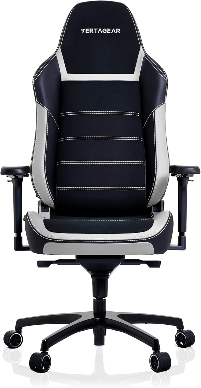Vertagear PL6800 Ergonomic Big & Tall Gaming Chair - ContourMax Lumbar & VertaAir Seat Systems - Black & White