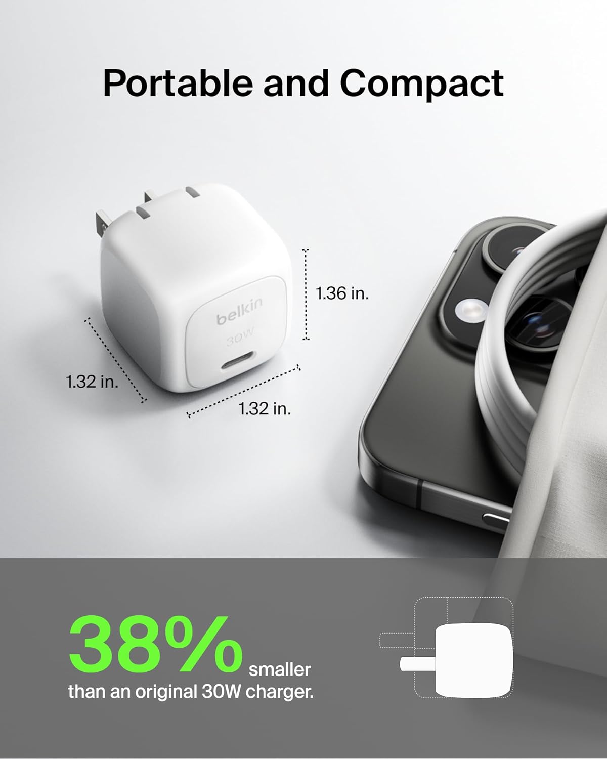- COMPACT & TRAVEL READY: This durable Belkin Wall Charger features a compact and lightweight design, making it the perfect charger for home, office, or travel. And with foldable prongs, it prevents damage to your luggage, bags, and pockets