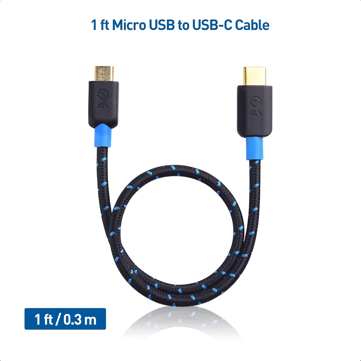 Cable Matters Braided Short USB C to Micro USB Cable - 1ft, Micro-USB to USB-C Cable, USBC to Micro-USB Cord, for Wall Chargers, Game Controllers & More -Black