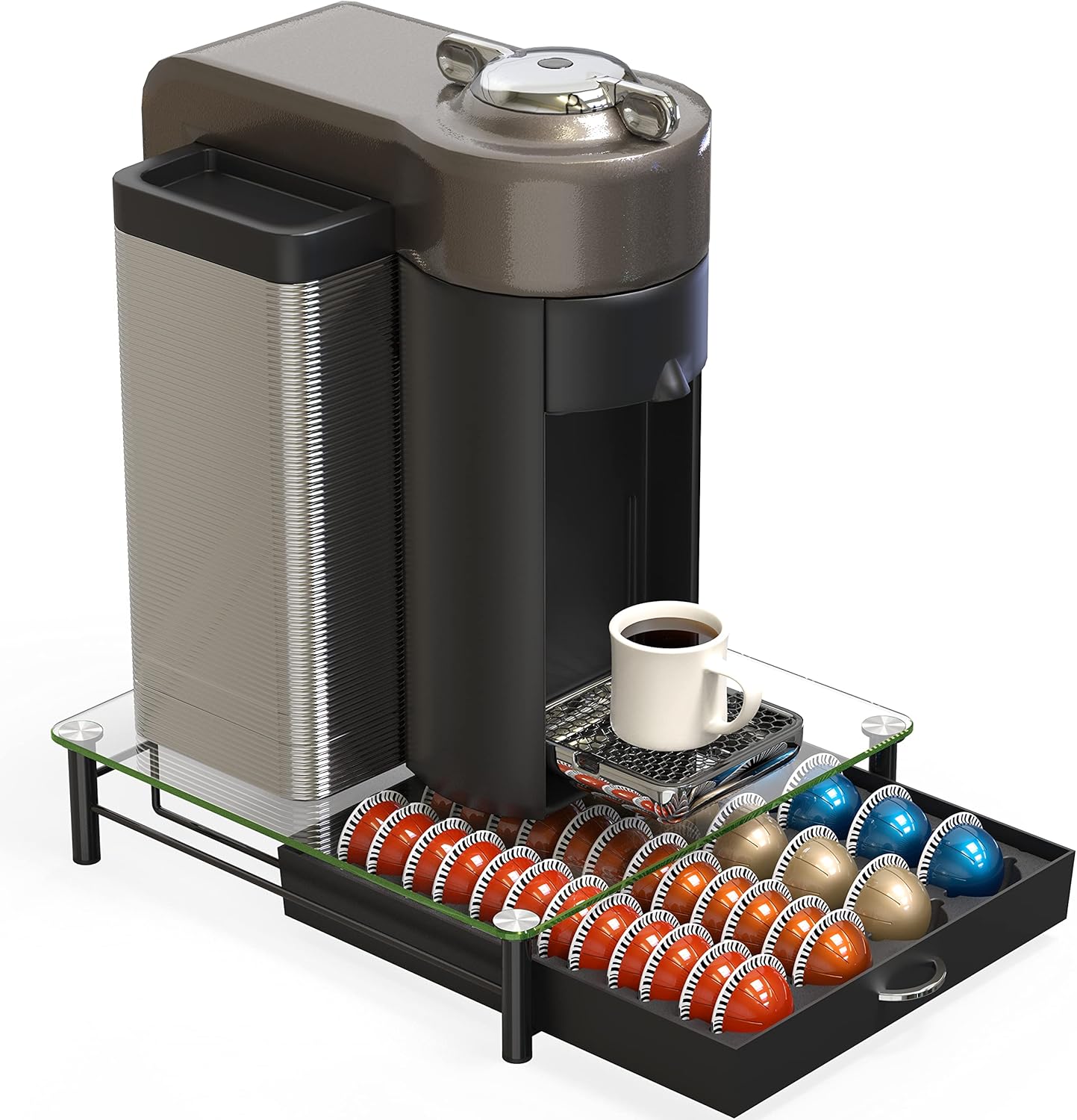 DecoBrothers Crystal Tempered Glass Vertuo Pod Holder Drawer Nespresso Capsule Organizer