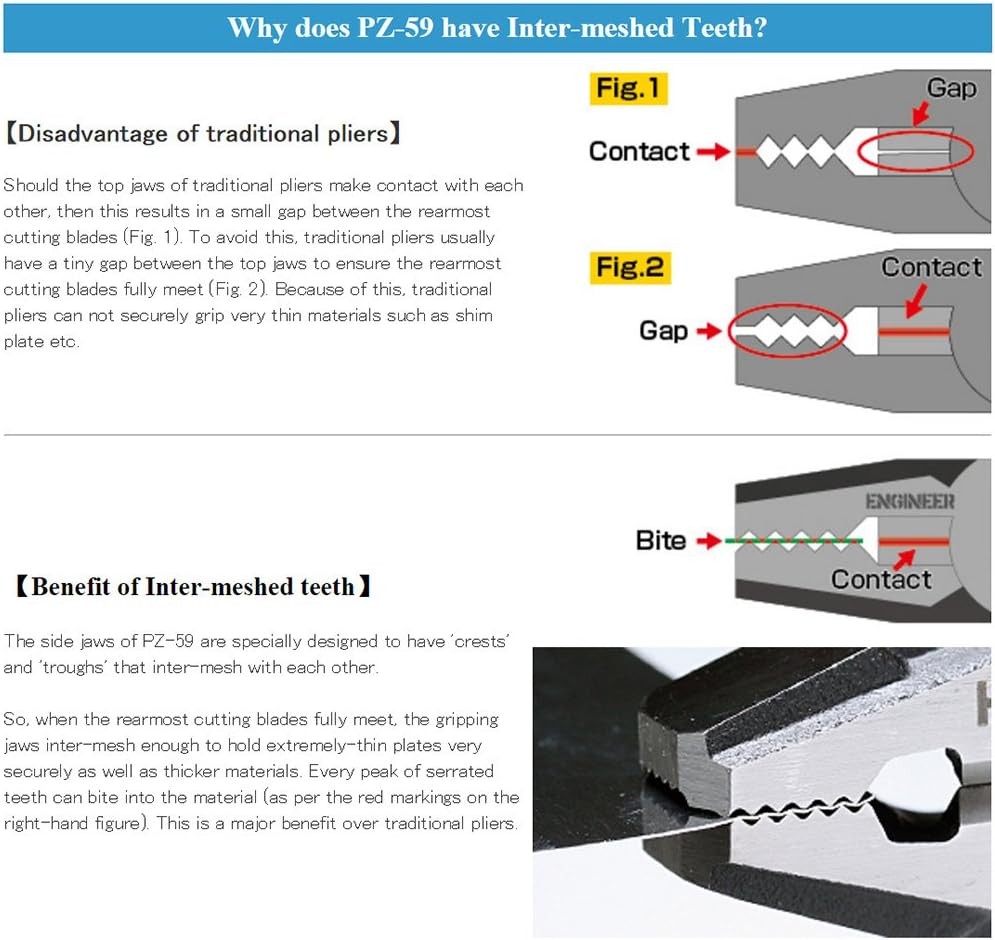 • innovative inter-meshed jaw teeth allows a firm grip on the thinnest of materials