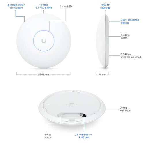 Ubiquiti UniFi U7 Pro Tri-Band Wi-Fi 7 Access Point