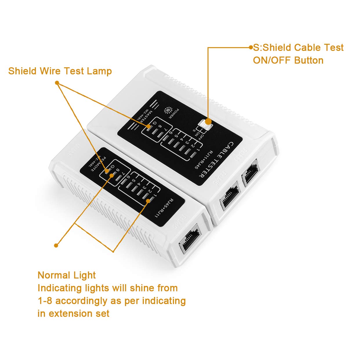 -This RJ45 Cable Tester can be applied in testing not only UTP and shield