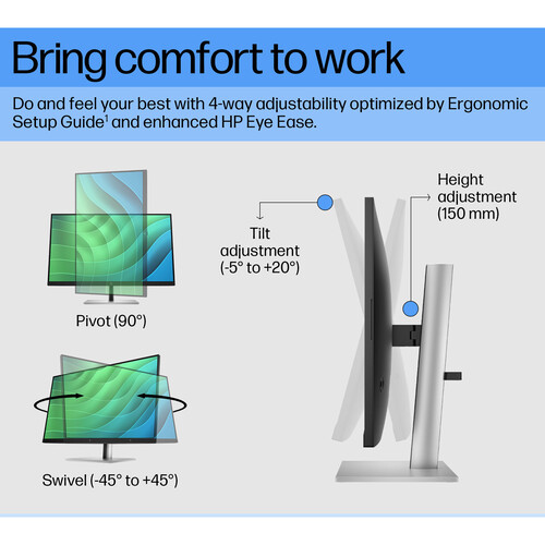 viewing and accessibility, this display features a tilt of -5 to 23°, a swivel