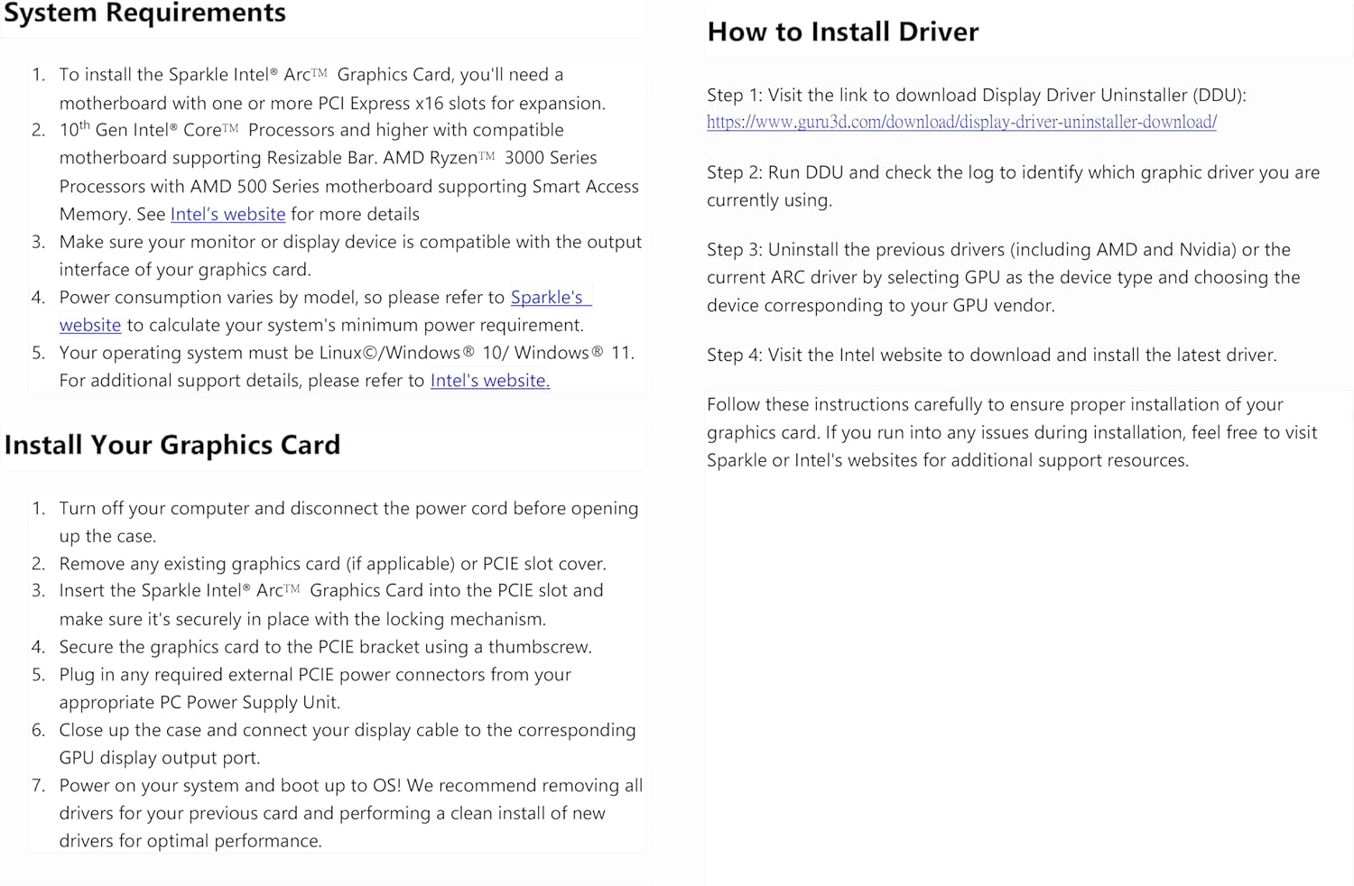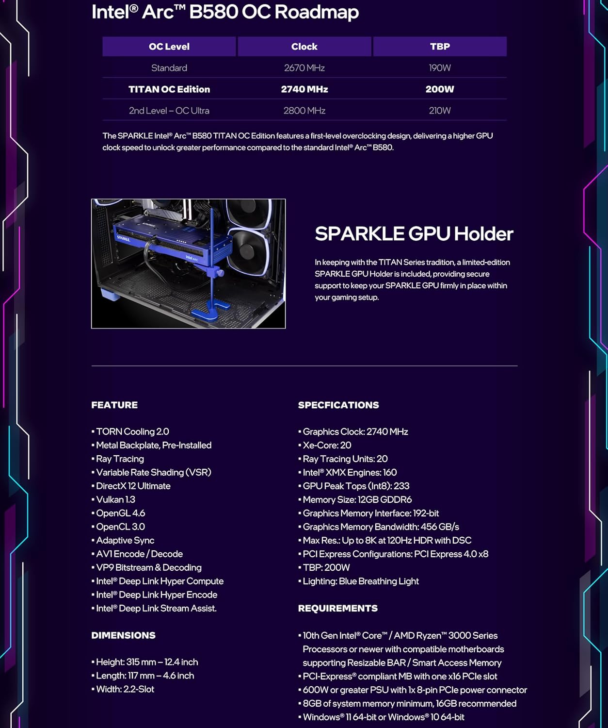 Sparkle Intel Arc B580 Titan - 12B GDDR6 PCIe 4.0 Graphics Card