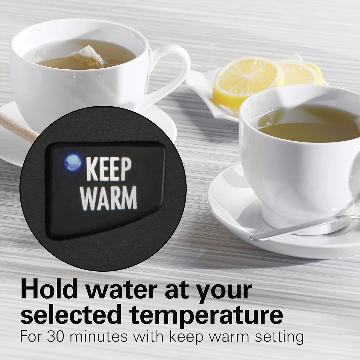 tea kettle. The keep warm option maintains heat for 30 minutes, so the