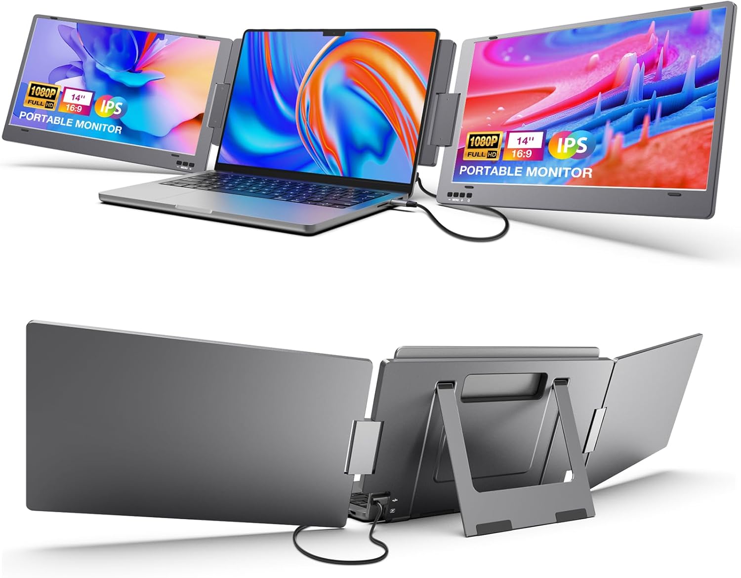 KYY USB-C Portable Dual Monitor Laptop Screen Extender - 14" FHD 1080P
