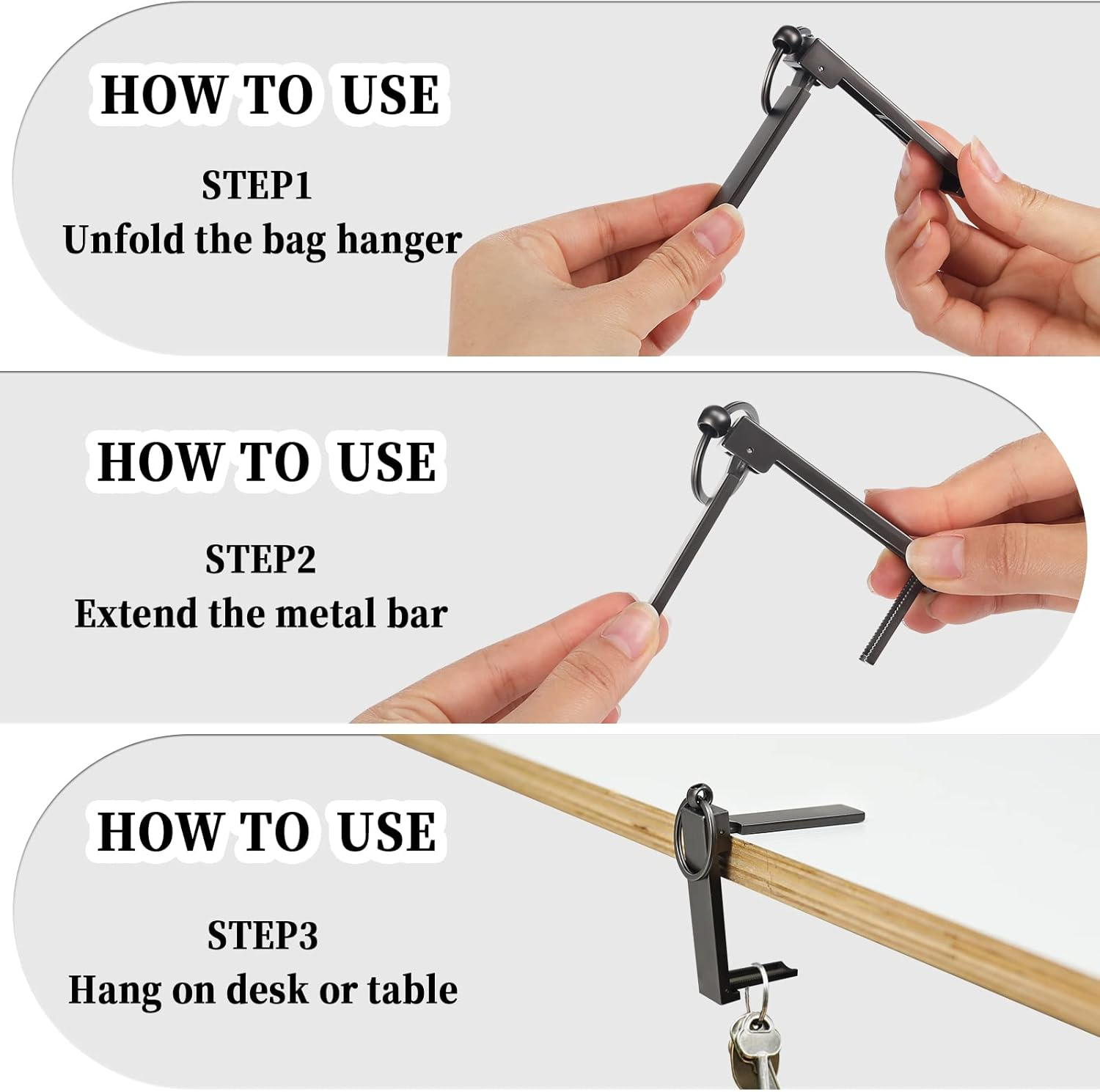 - Keep Your Bag Clean & Save: Simply lay the foldable hook hanger on the table, it can keep your handbag or purse keep off the dirty floor of the restaurant, coffee shop, bar, and make it stay safe by hanging it right next to you.