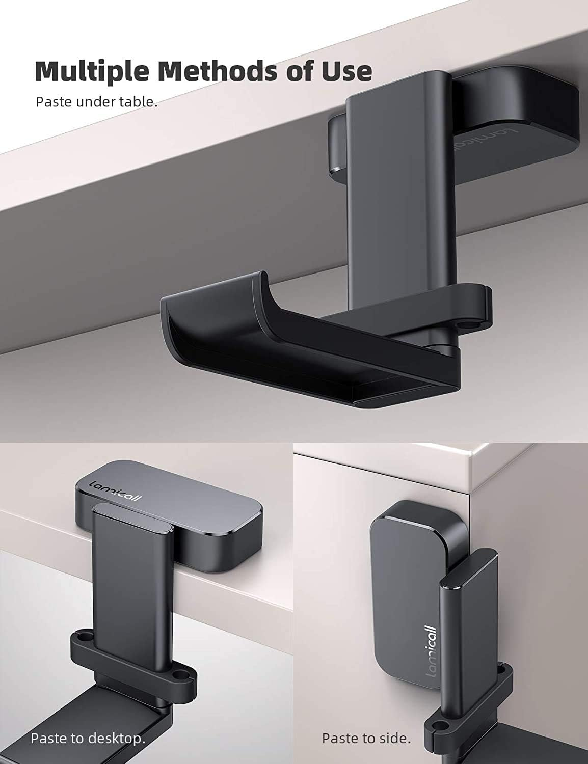 - 360 Degree Rotation - This stick headphone hanger with dual 360 degree rotation arm, Can be applied to different positions. Can paste under table, paste to desktop, paste to the side of cabinet and other smooth surfaces.
