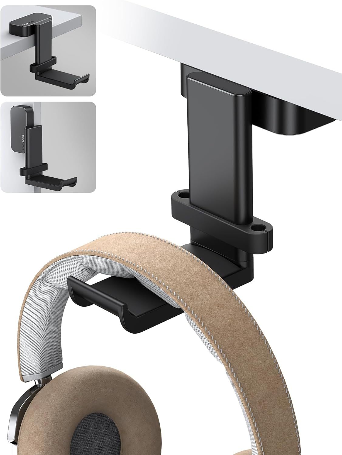 Lamicall Headphone Stand, Headset Hanger - 360 Degree Rotation Earphone Hook Holder Mount, Table Headphone Stand with Cable Organizer, Gaming Headset Clamp for HyperX, Razer, Sony, Sennheiser - Black
