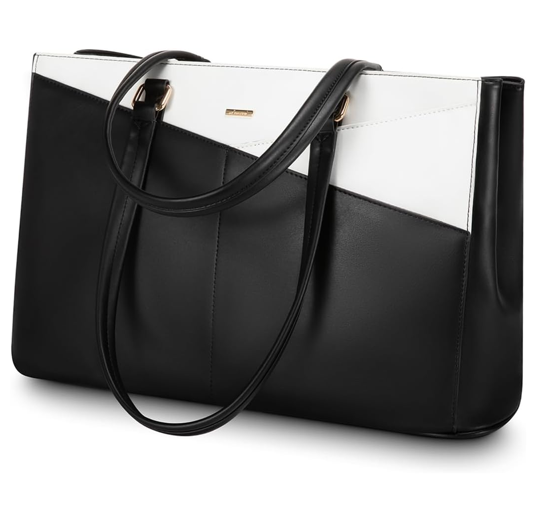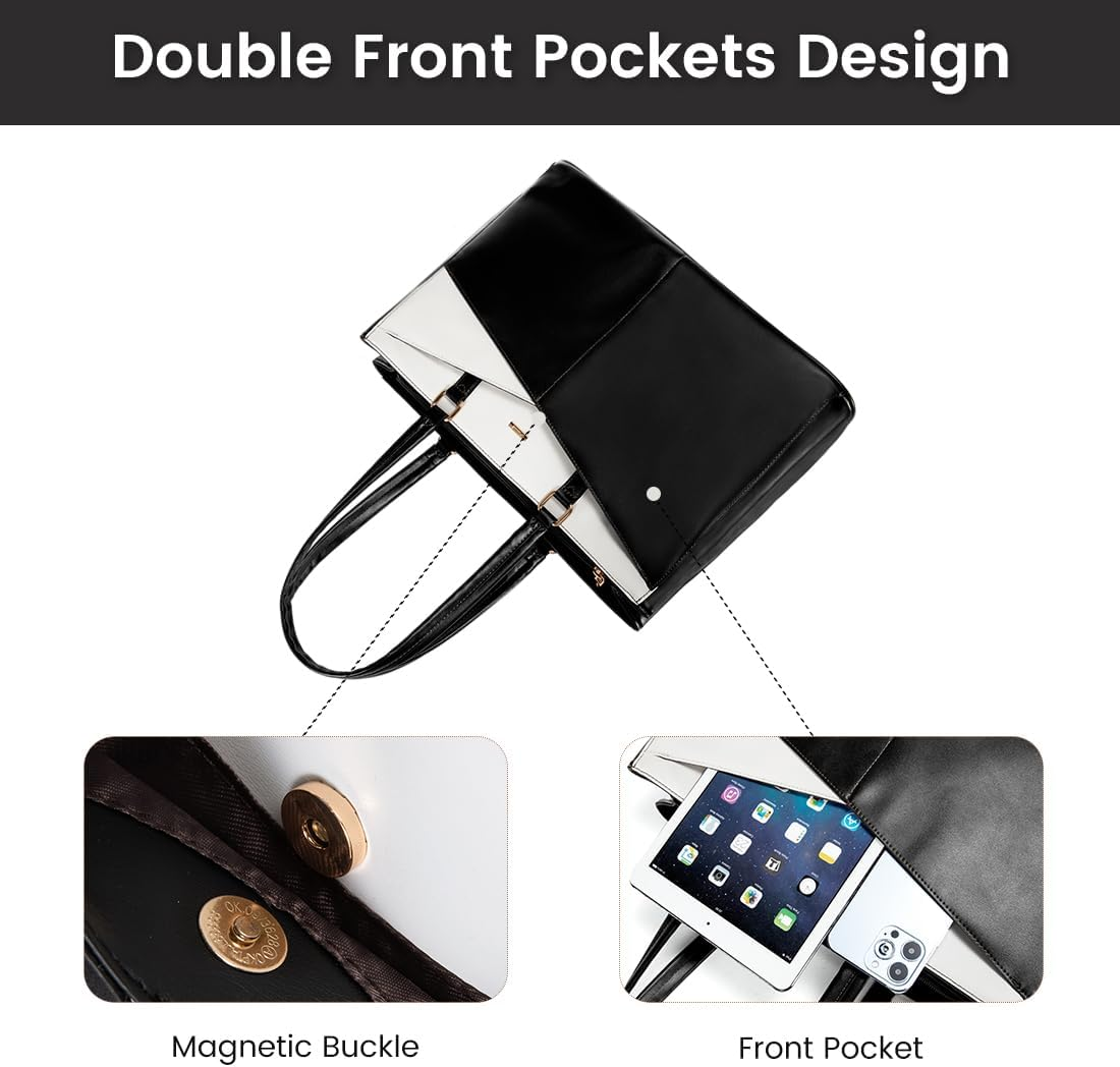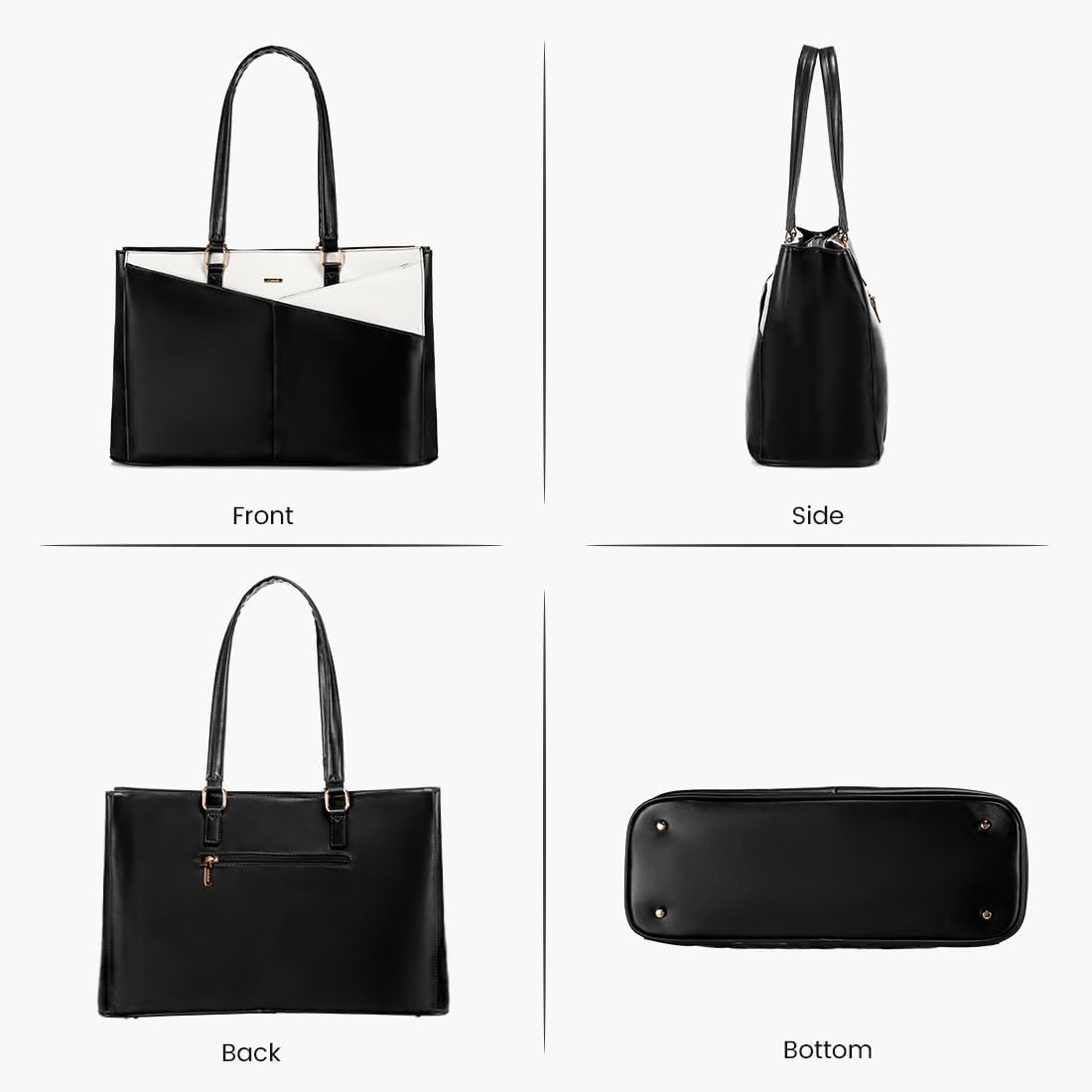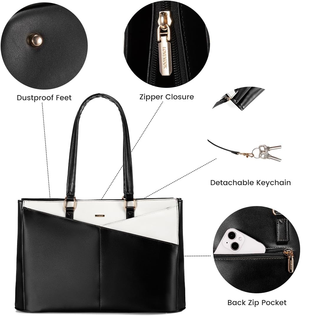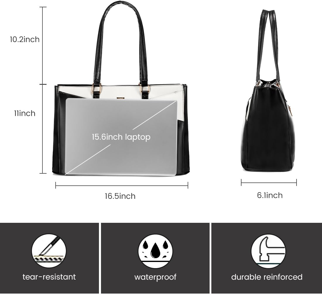 LOVEVOOK Laptop Bag for Women 15.6 Inch Tote Bags Waterproof Leather Briefcase Computer Women Business Office Work Bag,Black-White
