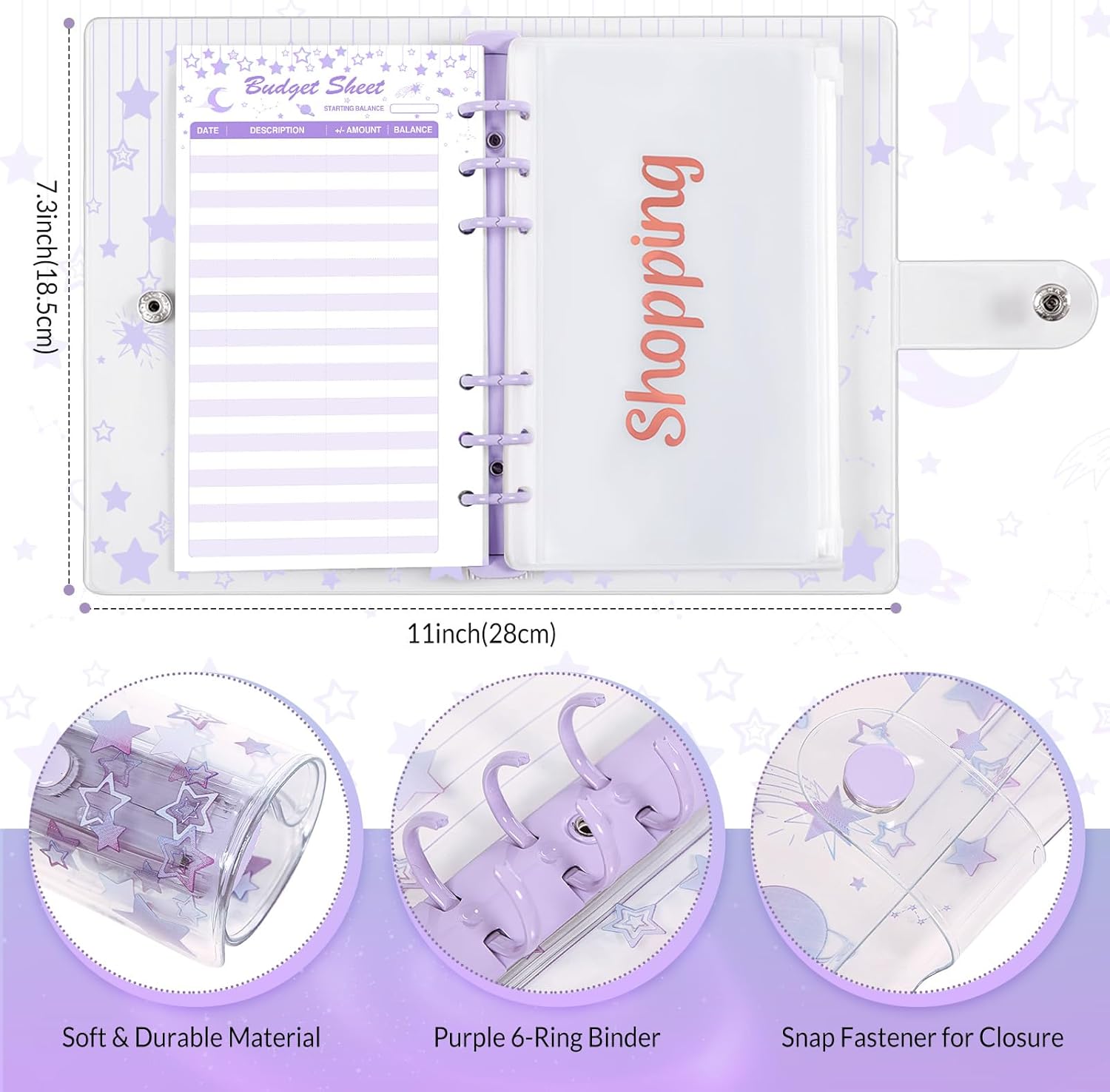 SKYDUE Budget Binder With Cash Envelopes & Expense Budget Sheets - Clear Purple