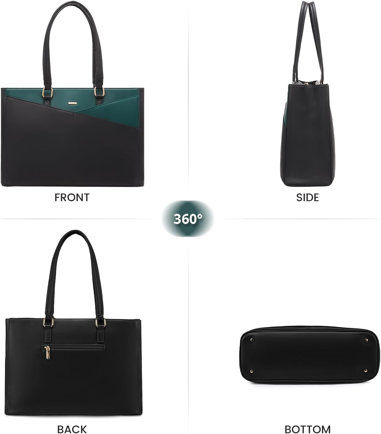 LOVEVOOK 15.6 Inch Waterproof Leather Laptop Tote Bag / Briefcase - Black & Dark Turquoise Green