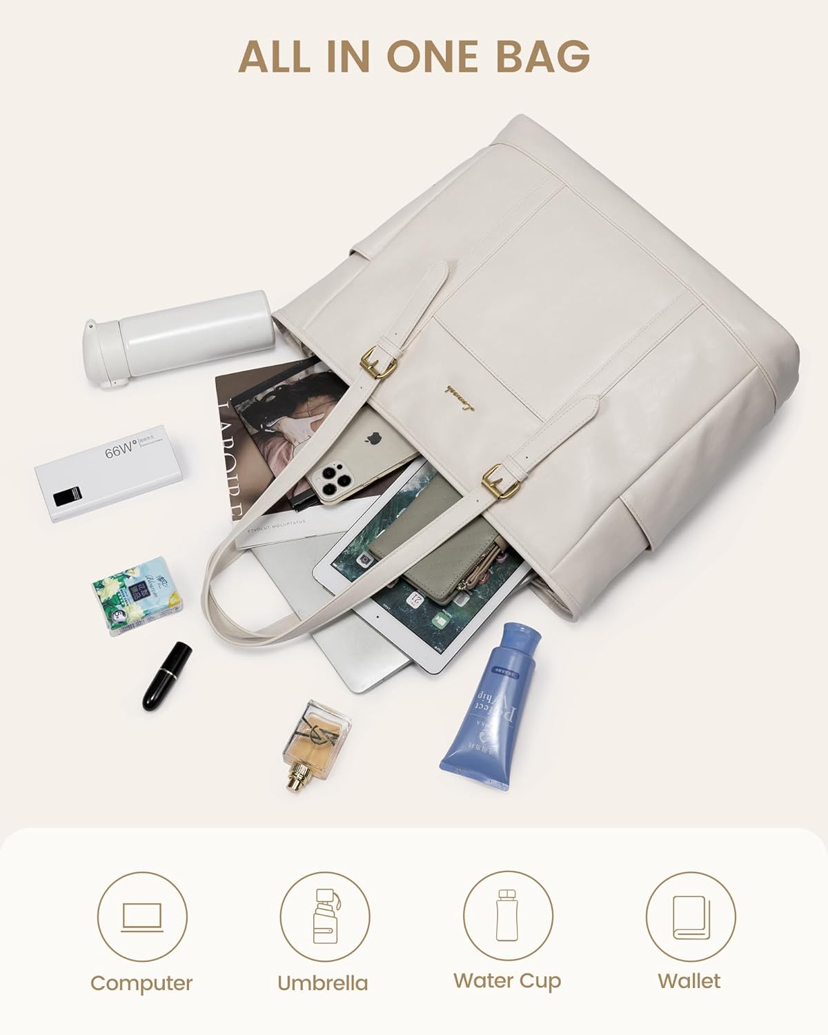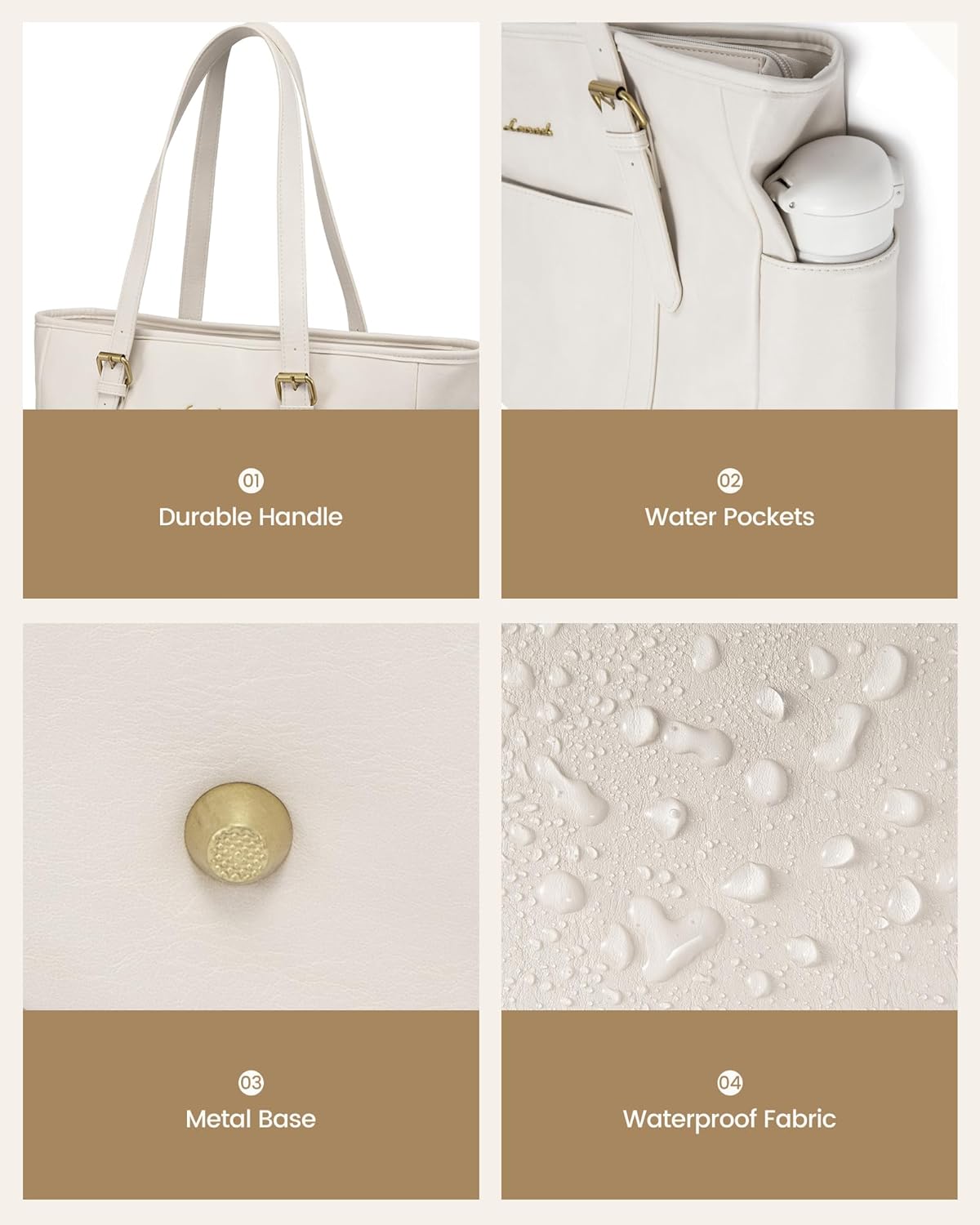 LOVEVOOK 15.6 Inch Vintage Waterproof Leather Laptop Tote Bag / Briefcase - White