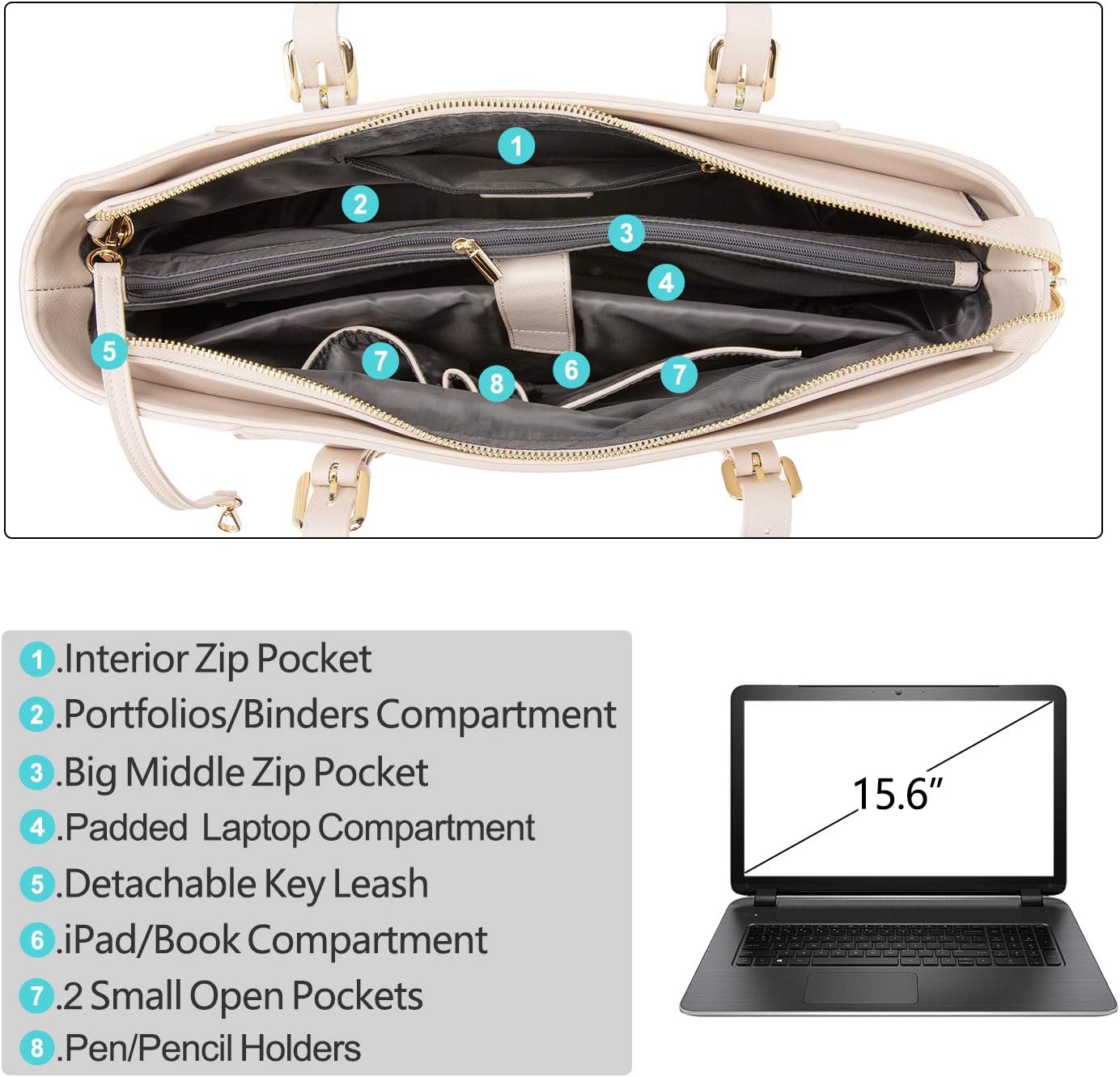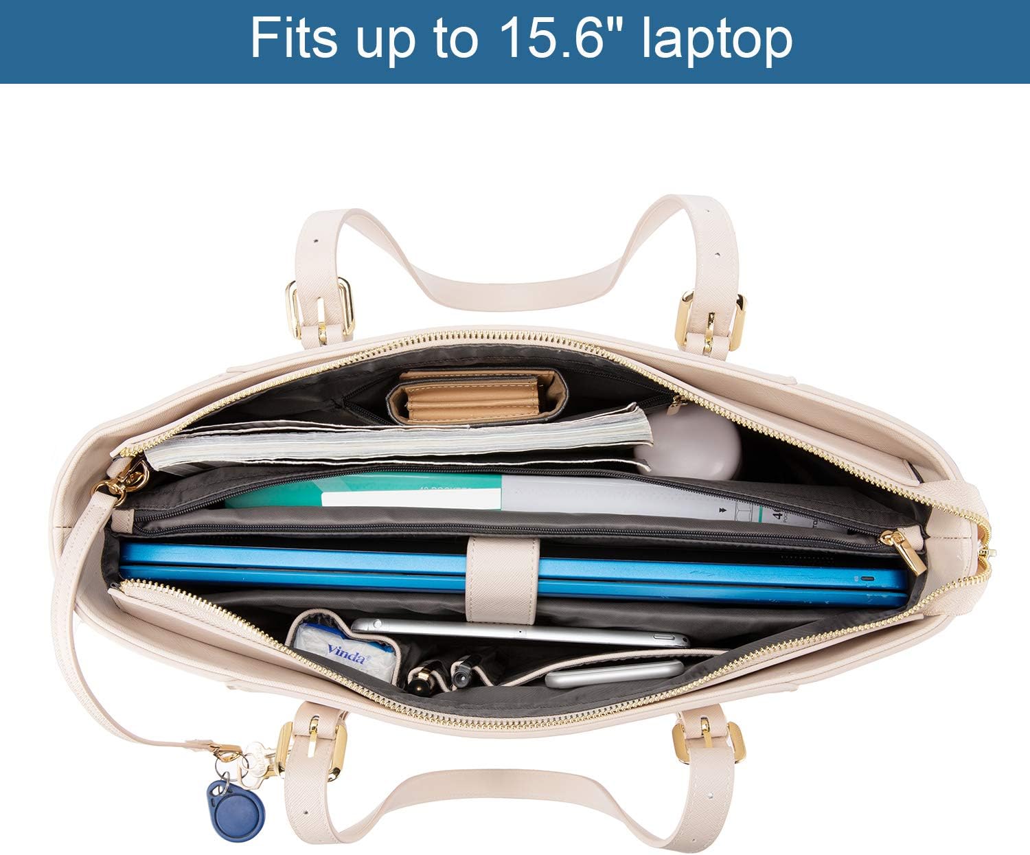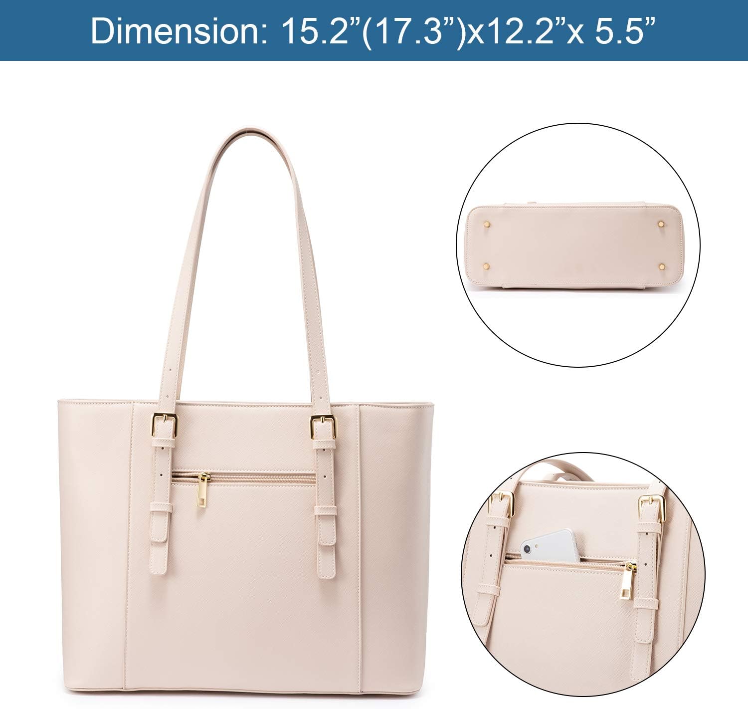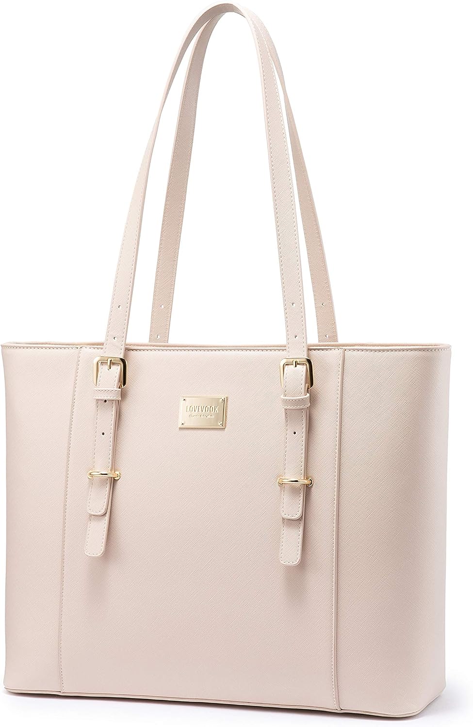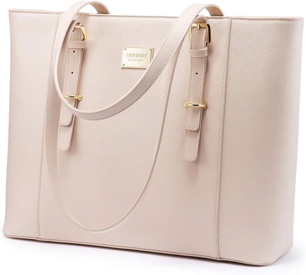 LOVEVOOK 15.6 Inch Structured Leather Laptop Tote Bag / Briefcase - Light Pink