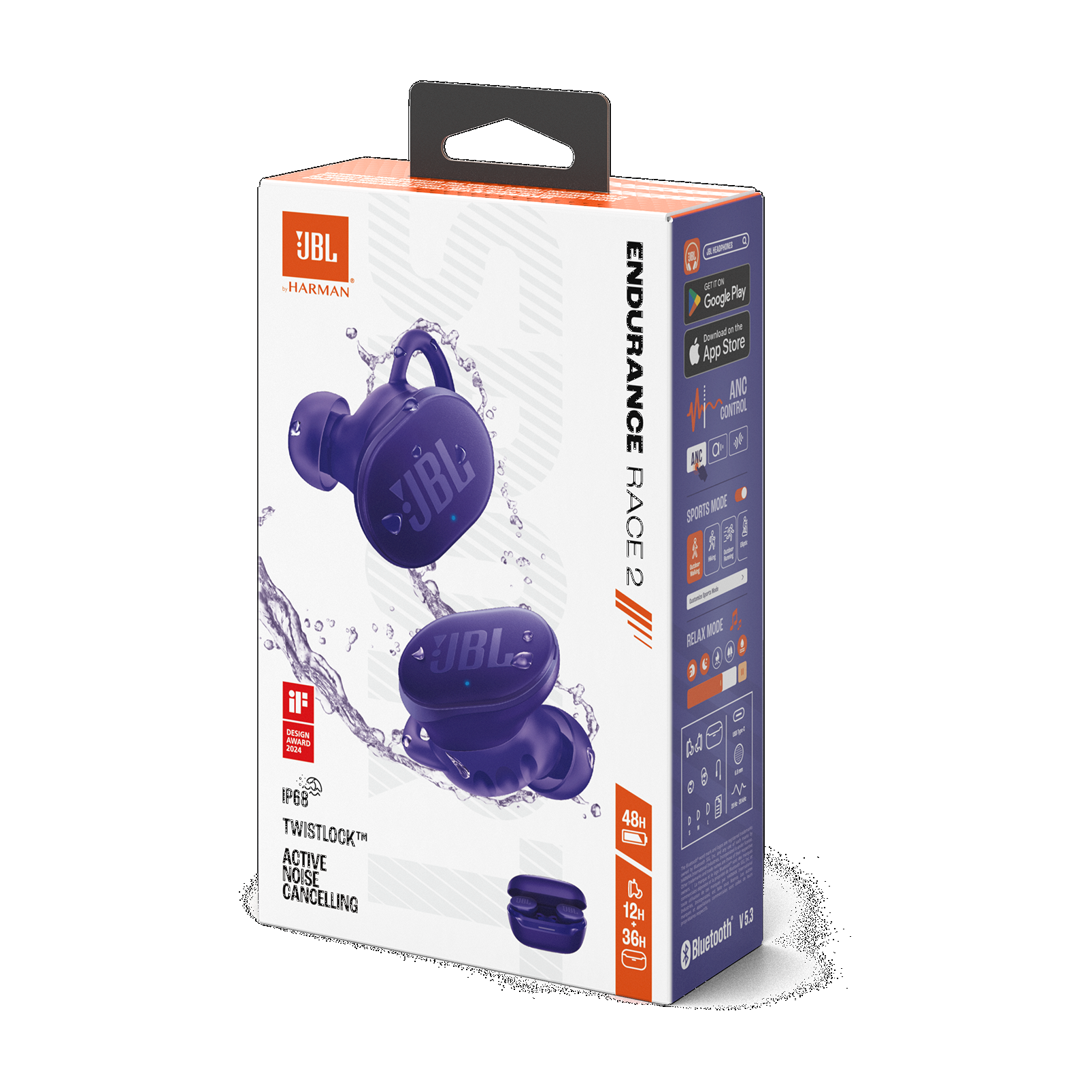 Stay focused on your music while on the move with the JBL Endurance Race 2, true wireless earbuds with active noise canceling and Smart Ambient mode for an optimal balance of awareness and isolation. With the ergonomic wing enhancer and Twistlock technology, these earbuds comfortably stay put during even the most rigorous workouts while providing a superior acoustic seal.