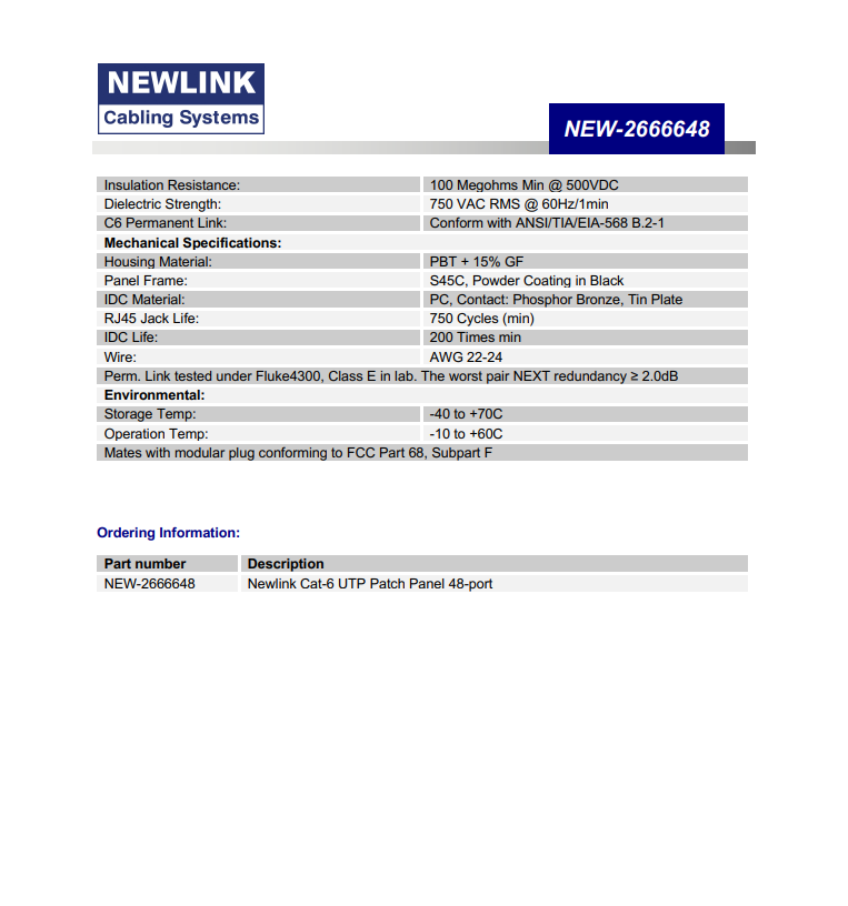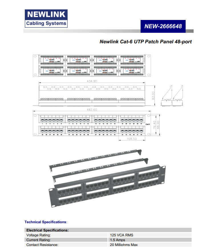 Newlink Cat-6 UTP Patch Panel 48-Port (NEW-2666648)
