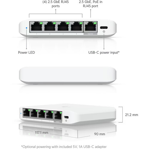 Ubiquiti Flex Mini 2.5G 5-Port Managed Network Switch [USW-Flex-2.5G-5]