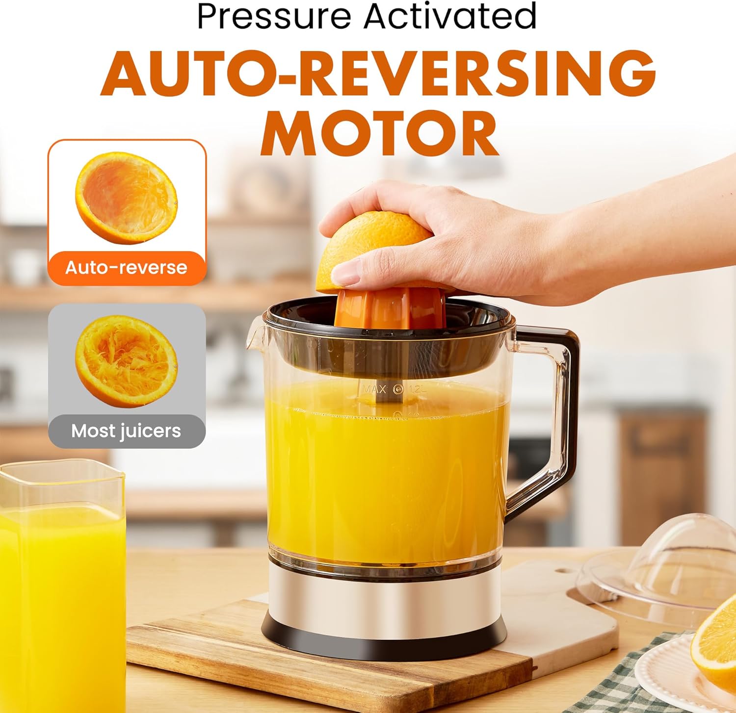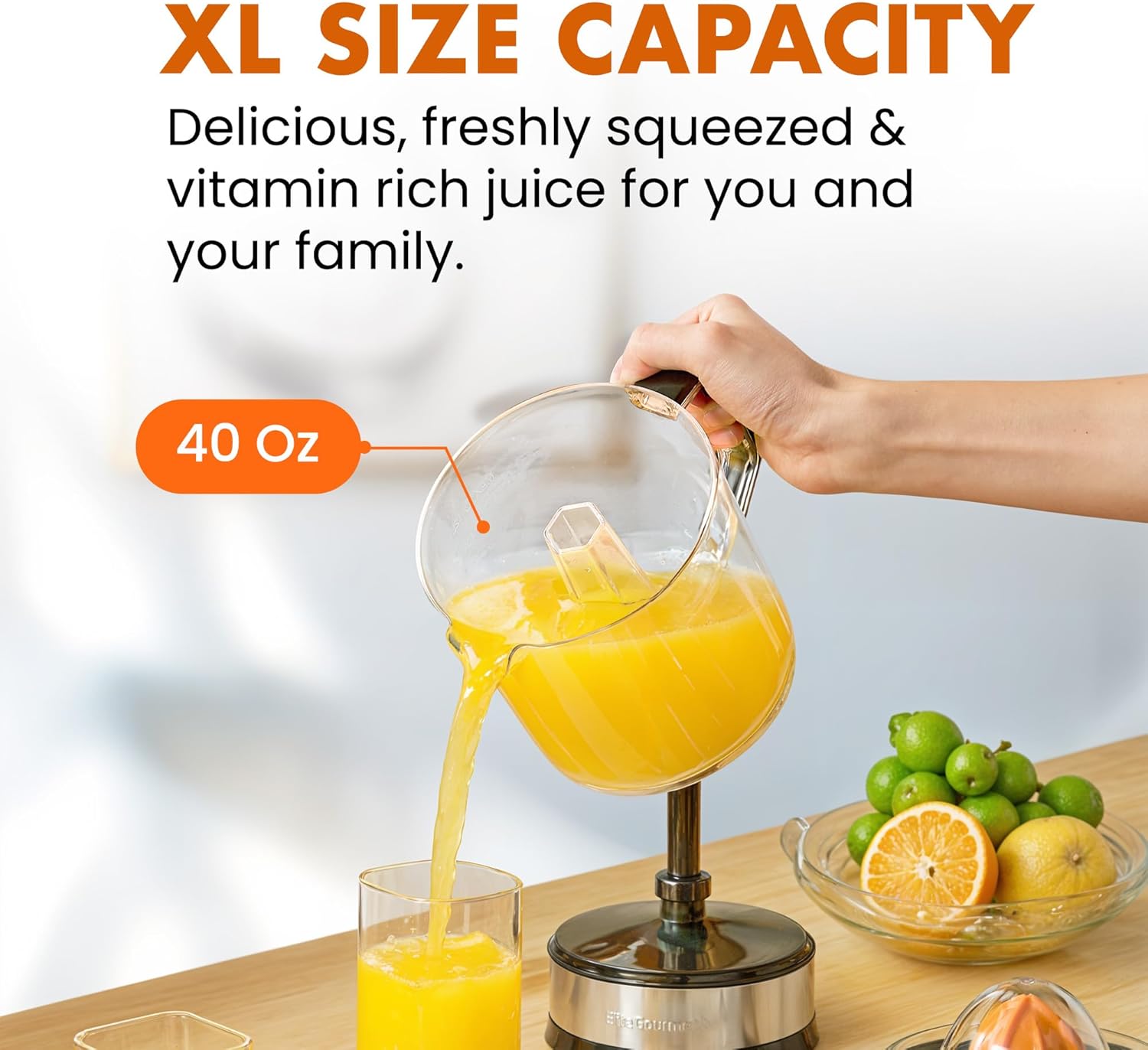 capacity is perfect for 4-5 servings of fresh healthy citrus juice, with a