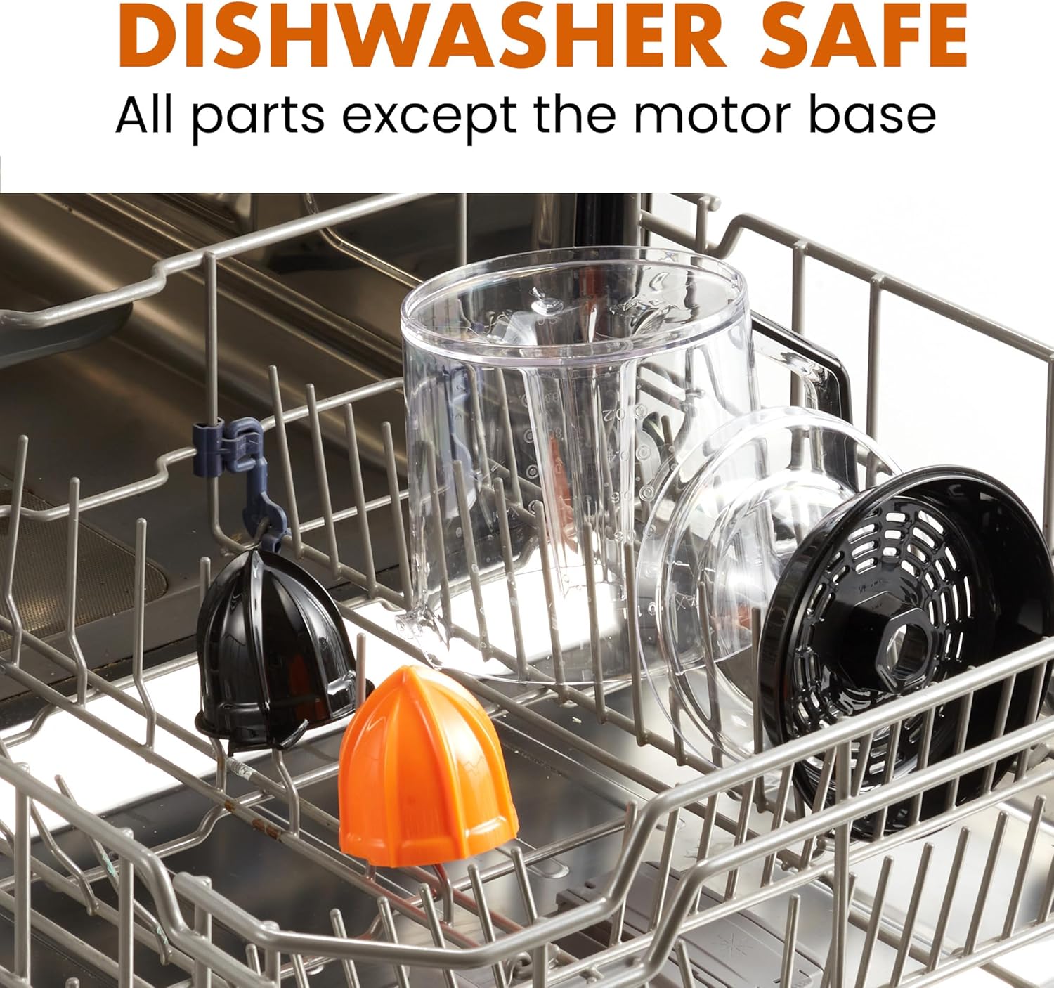 with a strainer/pulp/seed collector. All detachable parts are dishwasher