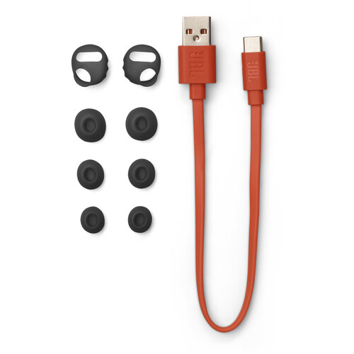 With an IP68 rating, these earbuds are waterproof and dustproof, ensuring they will stand up to the most intense exercise, hikes, and inclement weather. Sports Mode lets you choose six EQ presets based on the intensity of your workout, or you can customize your own. Potent 6.8mm dynamic drivers deliver JBL Pure Bass sound. Two beamforming mics on each earbud deliver crystal-clear calls in any environment. With up to 48 hours of playback with the included charging case, these buds will last for long trips and epic exercise sessions. The JBL Endurance Race 2 include three pairs of eartips in different sizes, two wing enhancers, and a USB-C charging cable