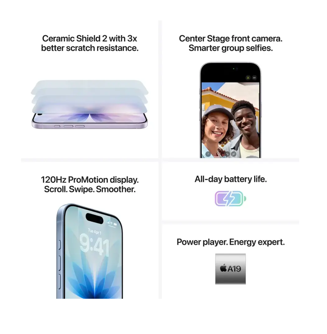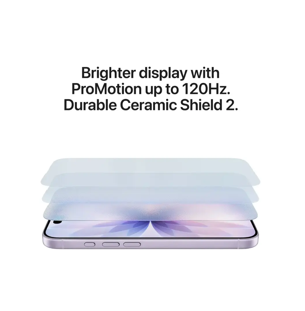 brighter 6.3-inch display, and a Ceramic Shield 2 front that’s 3x more