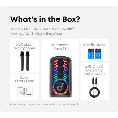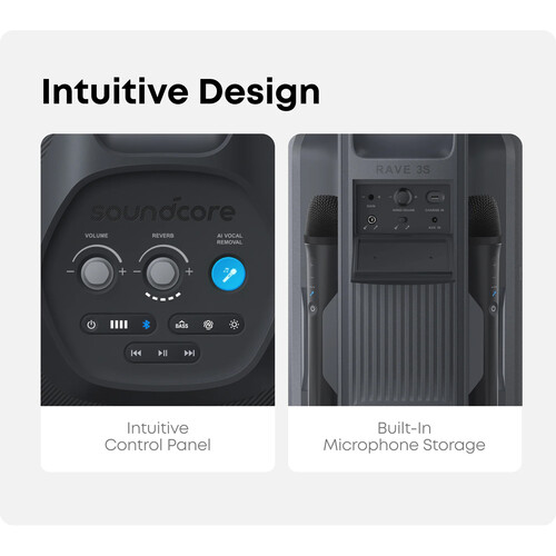 Anker Rave 3S AI Wireless Party Speaker with 2x Wireless Microphones