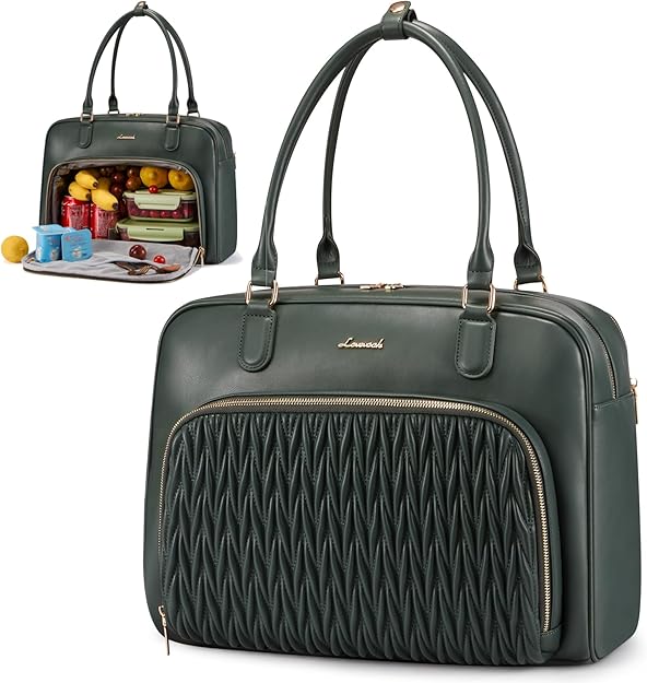 LOVEVOOK Tote Bag With Separate Laptop & Insulated Lunch Compartment - Dark Green