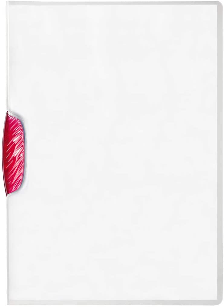 Elegant contoured clip binds documents in seconds then swings out for quick page changes. Front cover opens flat for easy viewing. Extra-rugged polypropylene is transparent on both sides.
