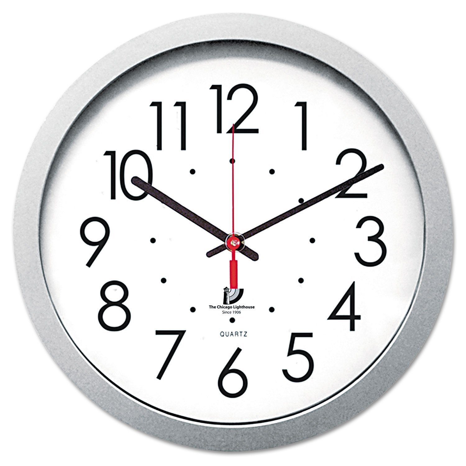 The Chicago Lighthouse Contemporary Wall Clock with White Dial, 14-1/2-Inch, Silver