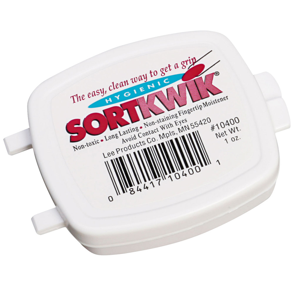 - The Lee SortKwik Fingertip Moistener is a powerful grip enhancer, providing a positive hold for all your counting, filing, collating and sorting tasks. With SortKwik, you are able to get all your money and paper handling tasks done with greater ease and speed. The patented antimicrobial ingredient offers superior hygienic protection. The product is non-toxic, odorless and won't stain skin, paper or clothes. Includes 2 containers of the 1.75 oz SortKwik.