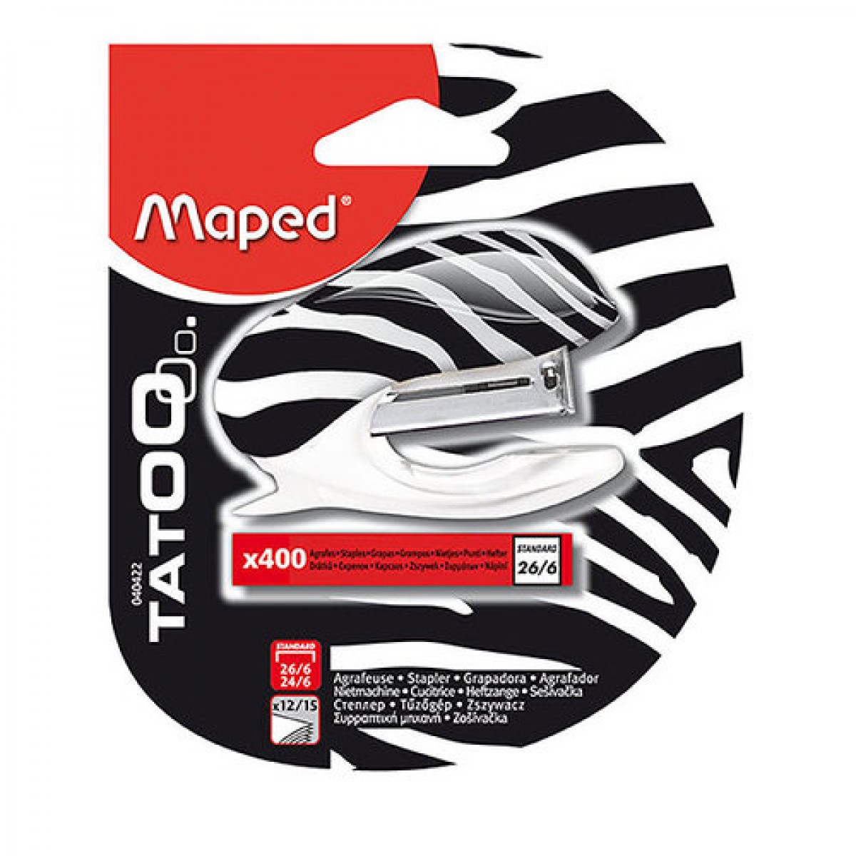 A handy little stapler with a great big design, the Maped Tattoo Mini Stapler has an impressive staple capacity and funky look. The Maped Tattoo Mini Stapler carries a zebra print design to let it stand out from the crowd. Holding up to 58 staples ensures that the Maped Tattoo Mini Stapler won't run out in a hurry.